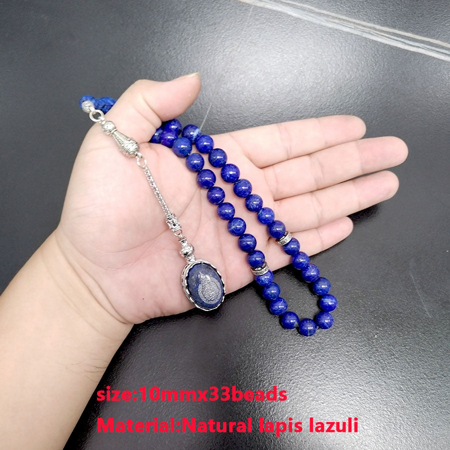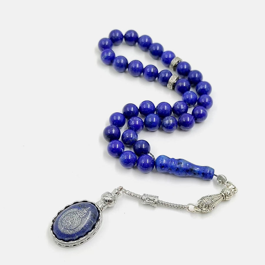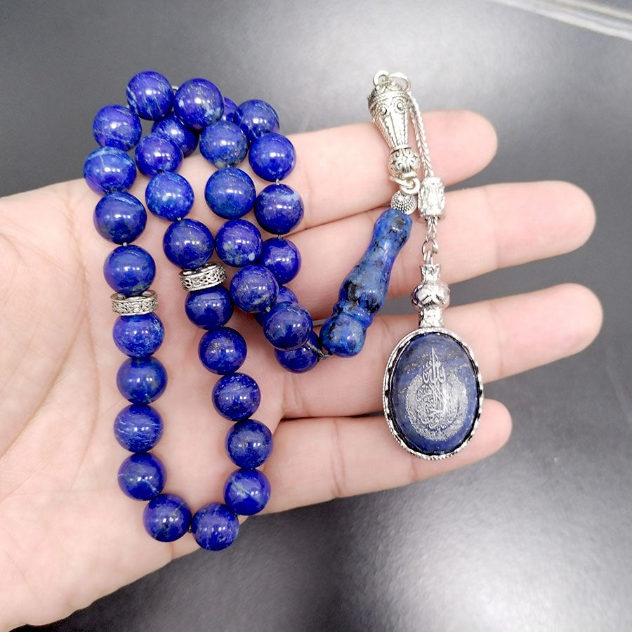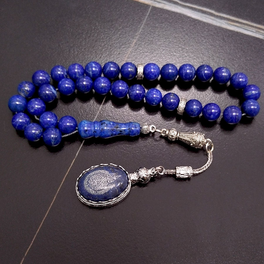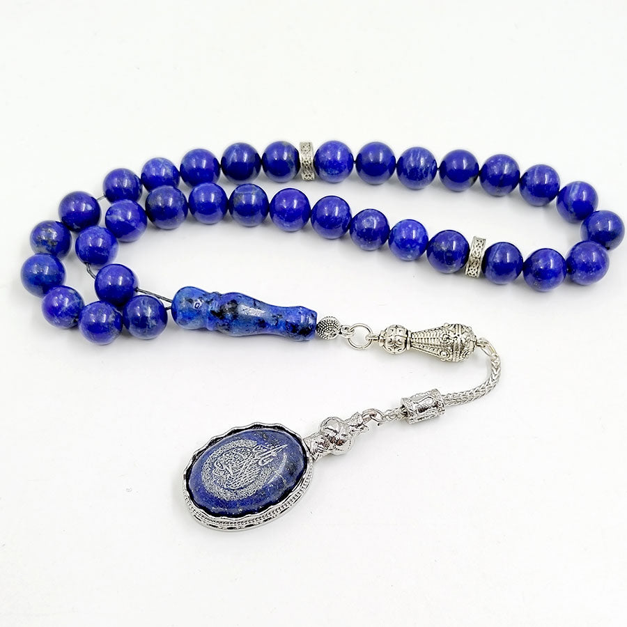 سبحة حجر الازورد مع اكسسوار حجر الازورد نقش اية الكرسي
