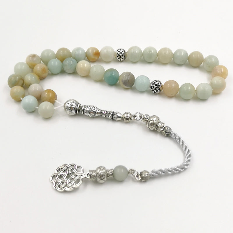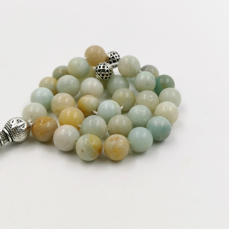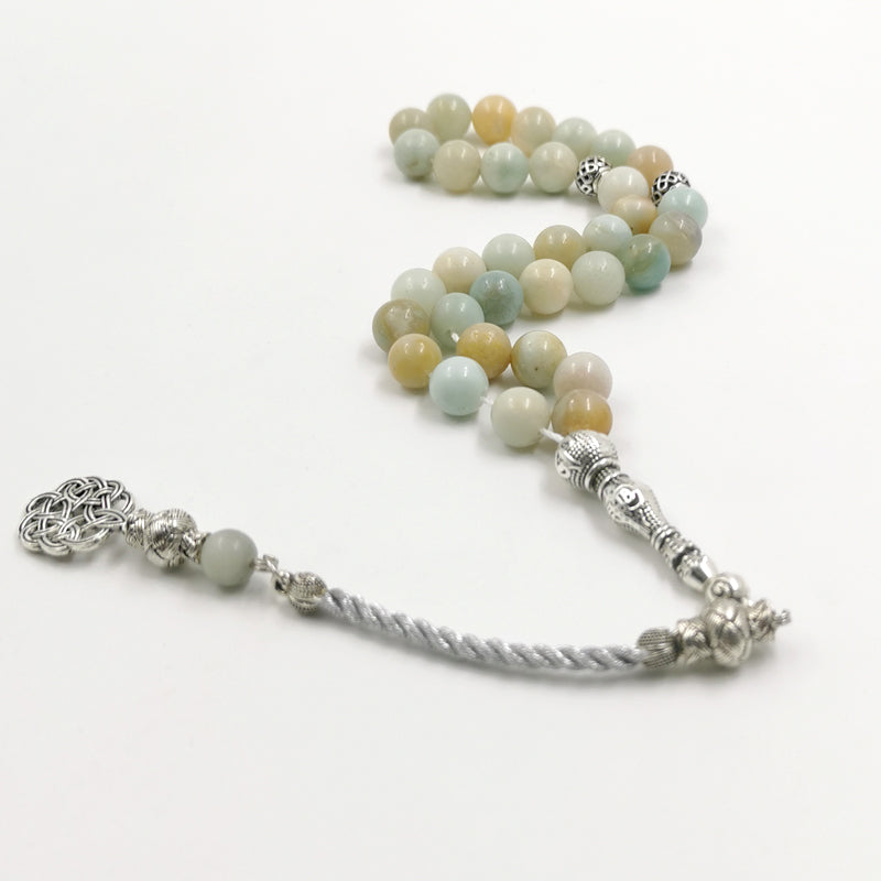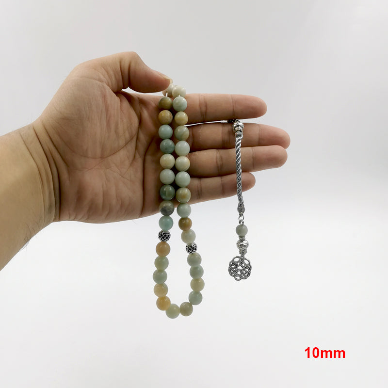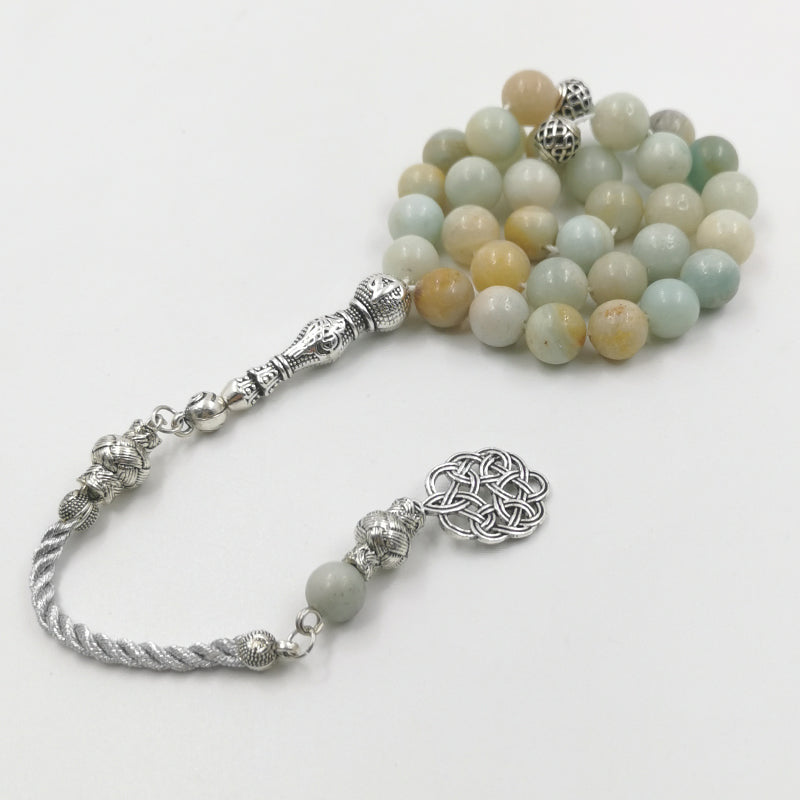 سبحة حجر امازونيت طبيعي مع الشرابة مميزه و الاكسسوار تركيه