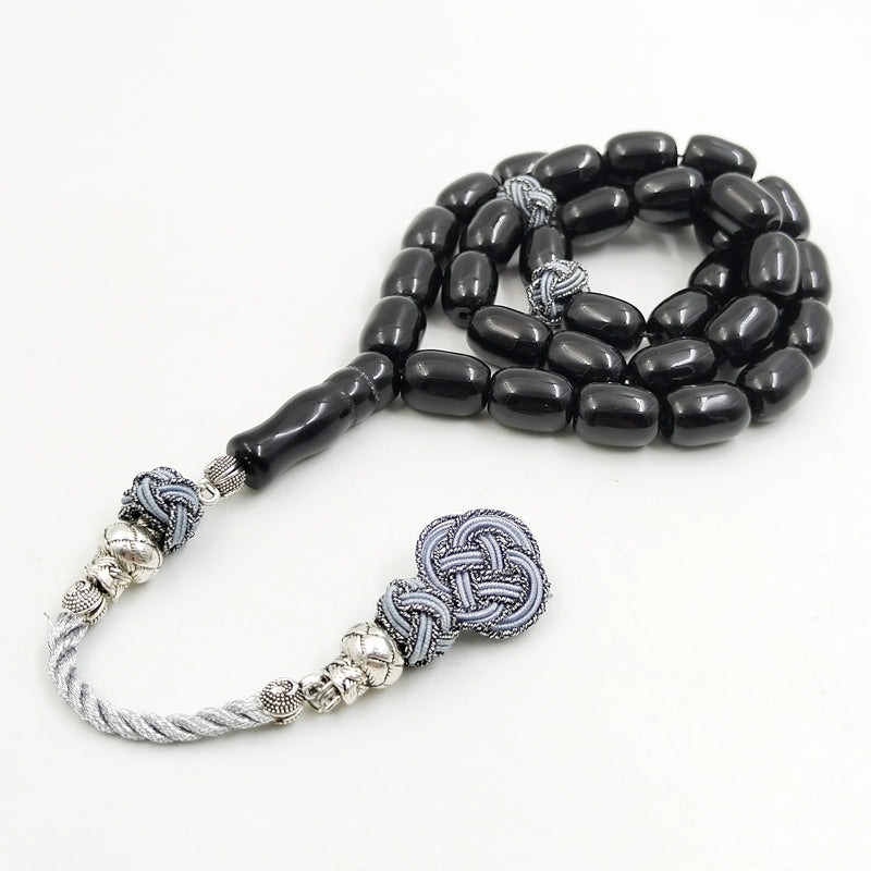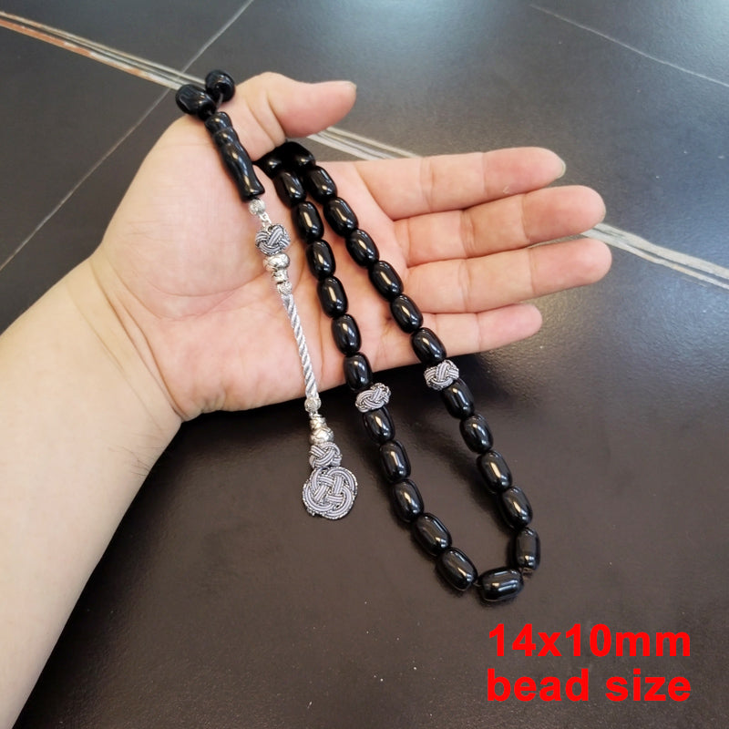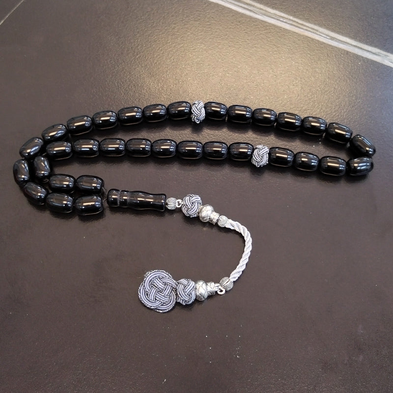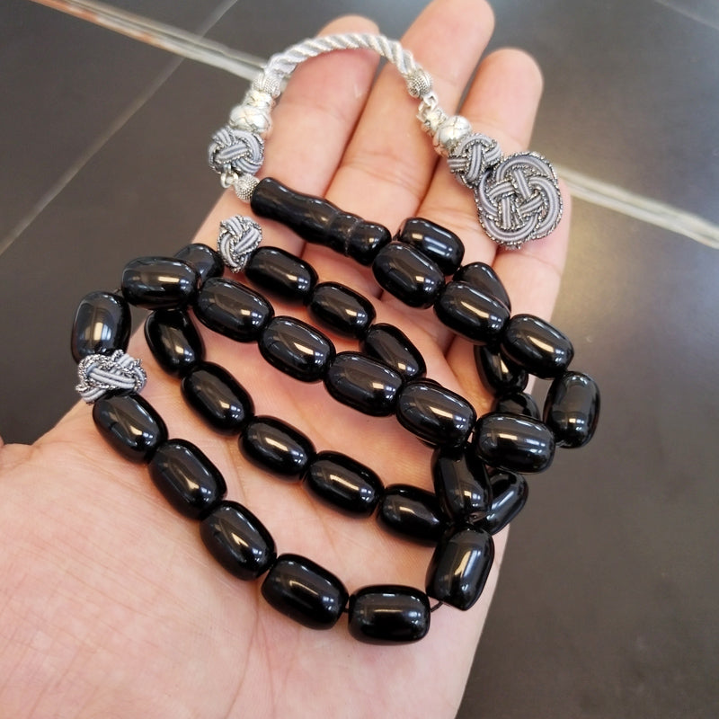 سبحة رجاليه حجر عقيق اسود مع طربزونة قطن يدويه