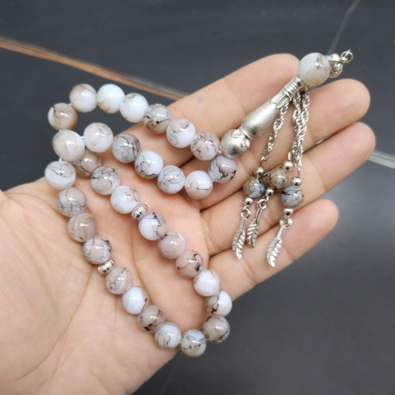 سبحة رجاليه حجر مكونة لون ابيض مميزه