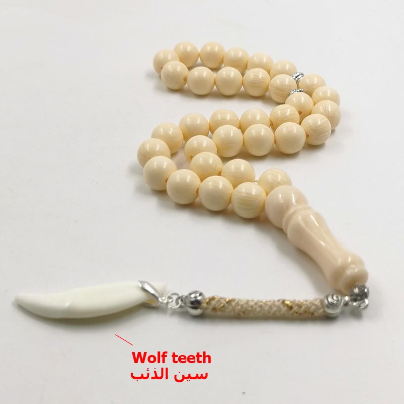 سبحة رجاليه عاج مقلد مع ناب ذئب حقيقي