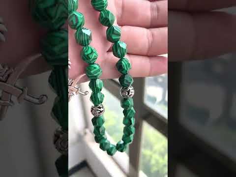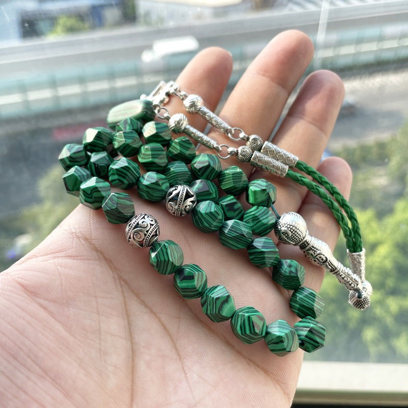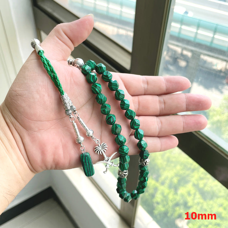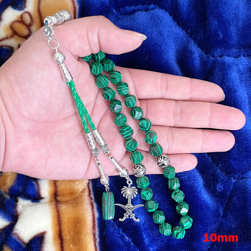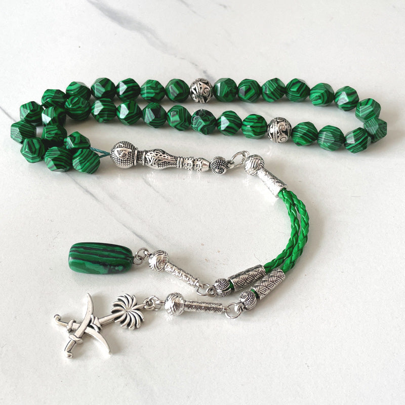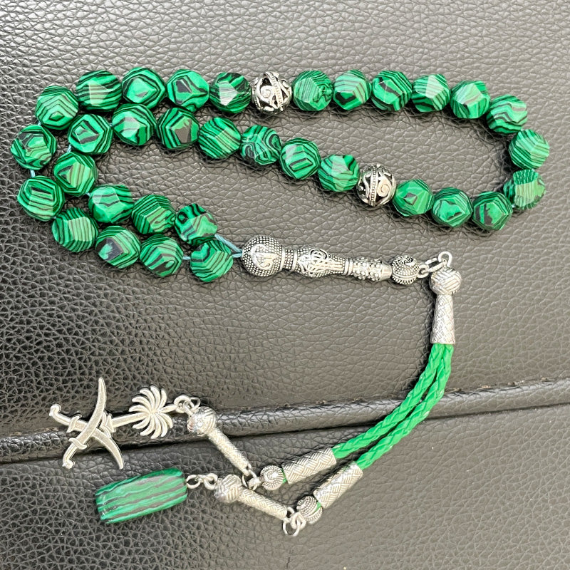 سبحة شعار سعودية حجر الملاكيت الشكل المعين مسبحه انيقة