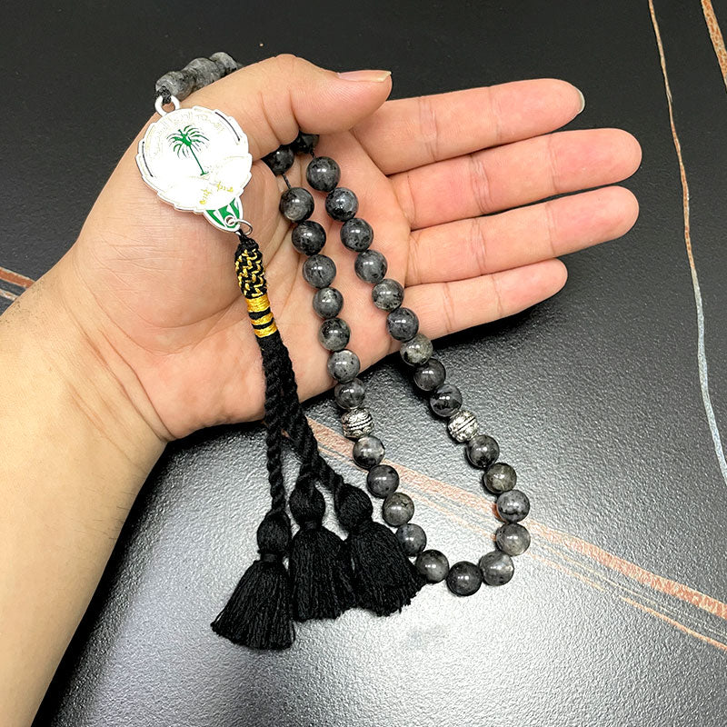 سبحة شعار سعودية حجر اللابرادوريت طبيعي
