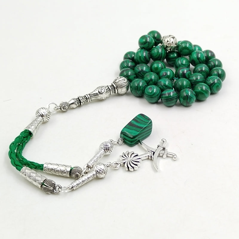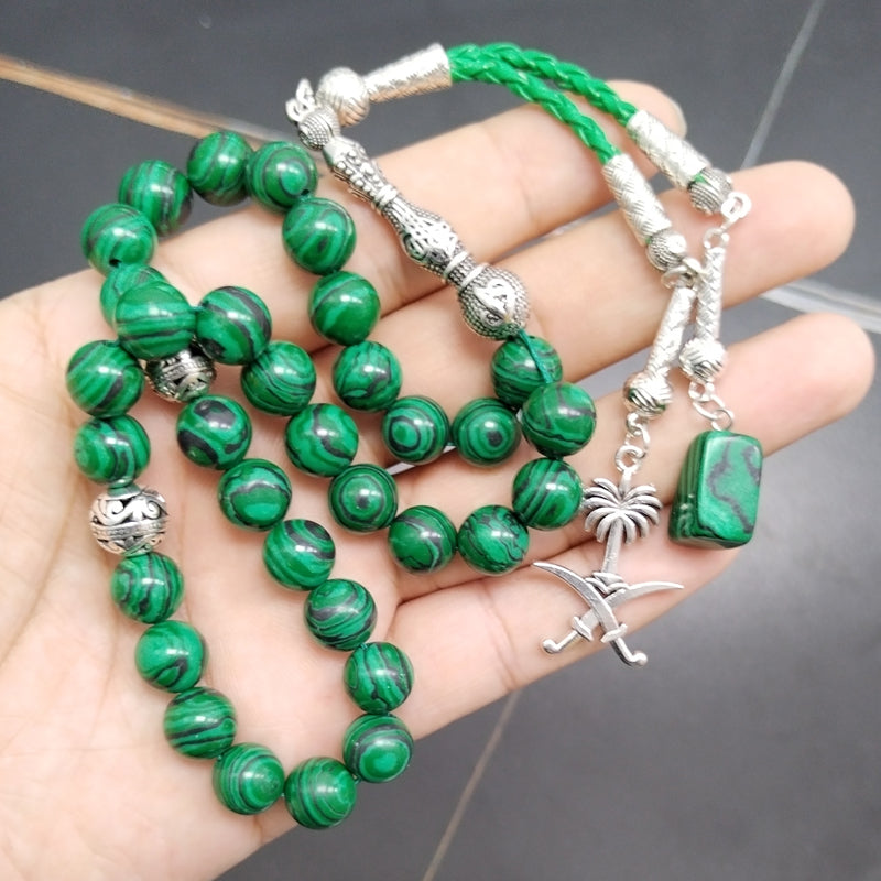 سبحة شعار سعودية حجر الملاكيت مسبحه انيقة