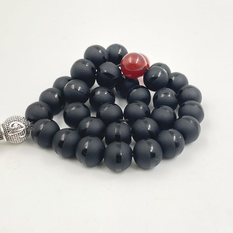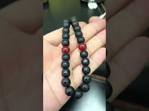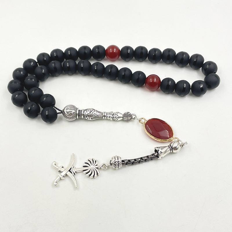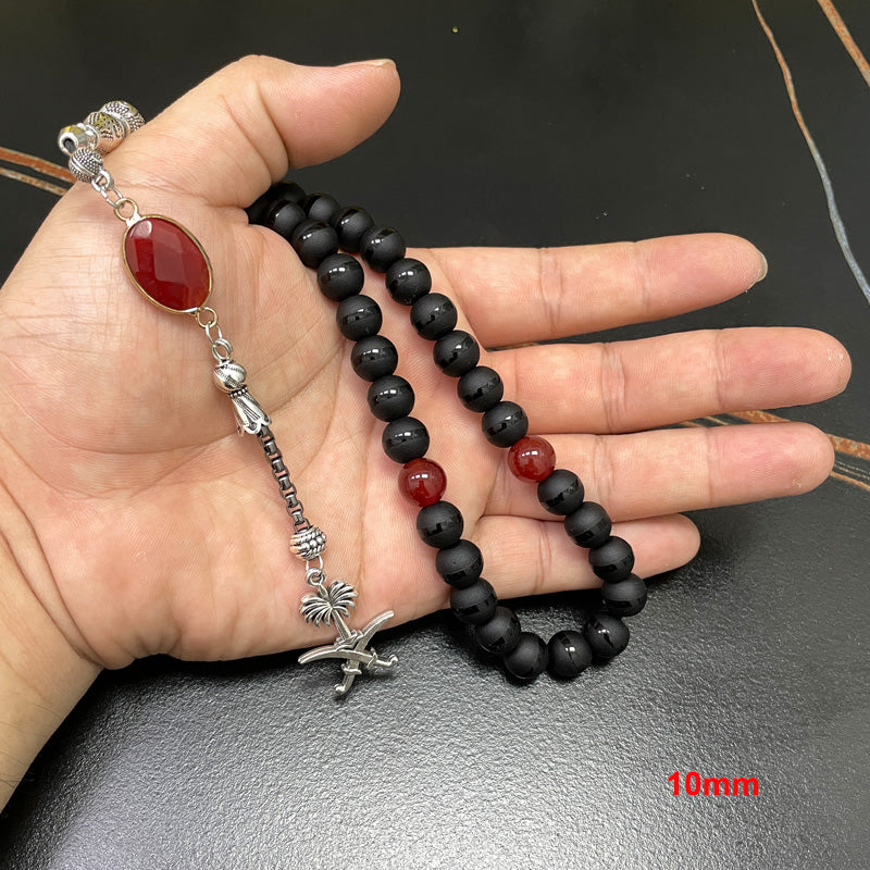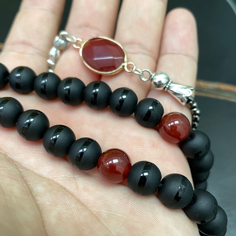 مادة الخرزات :كريستال اسود مع عقيق احمر طبيعي