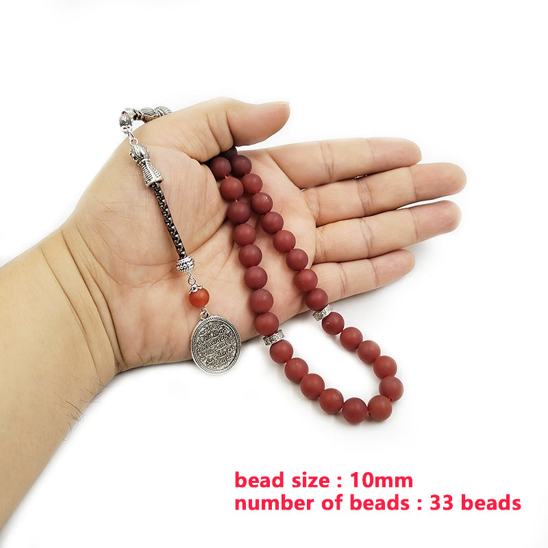 سبحة عقيق احمر مطفي مع الاكسسوار العربي