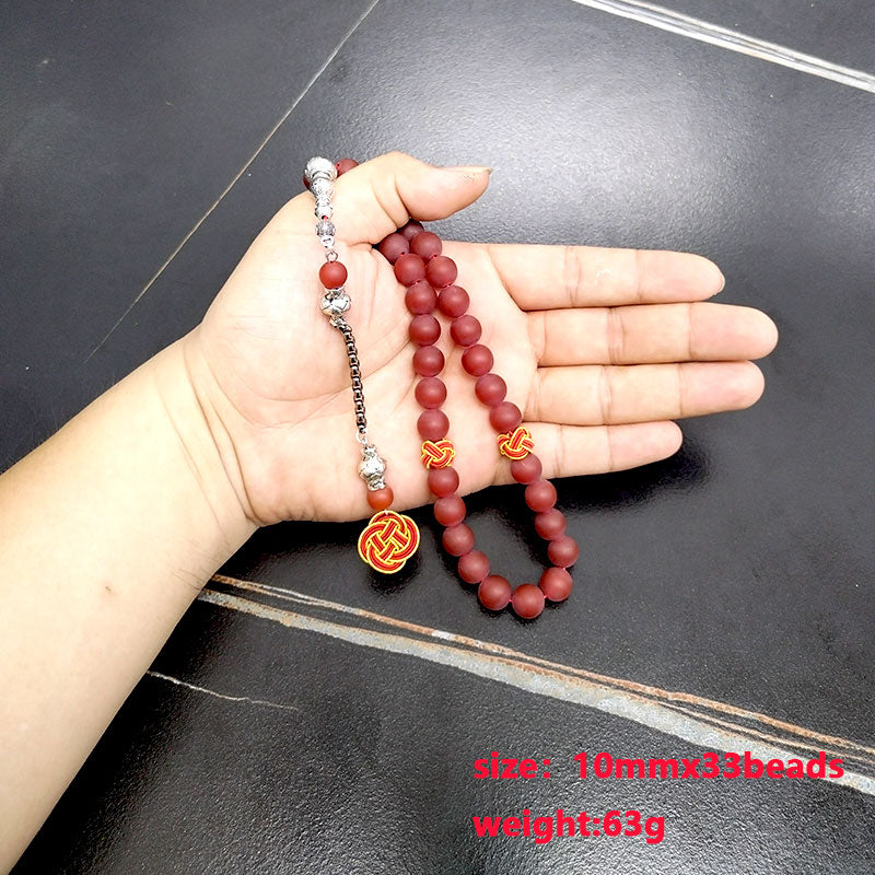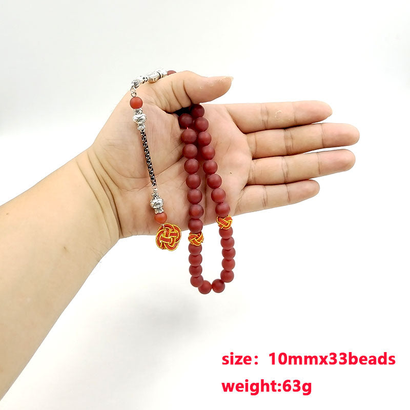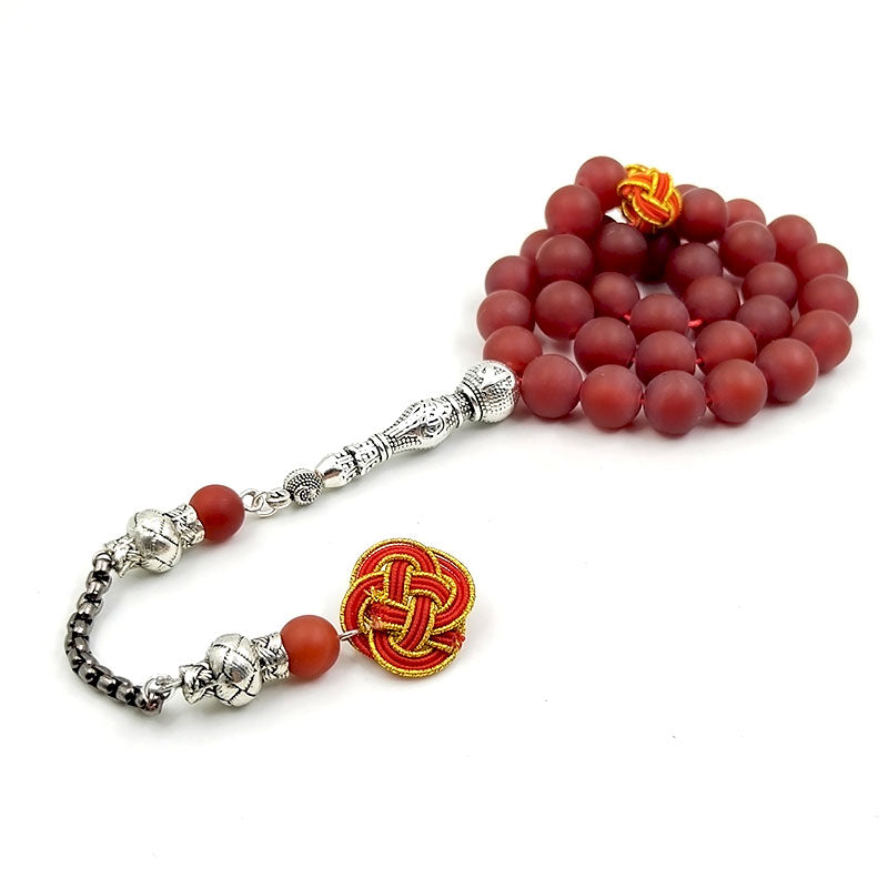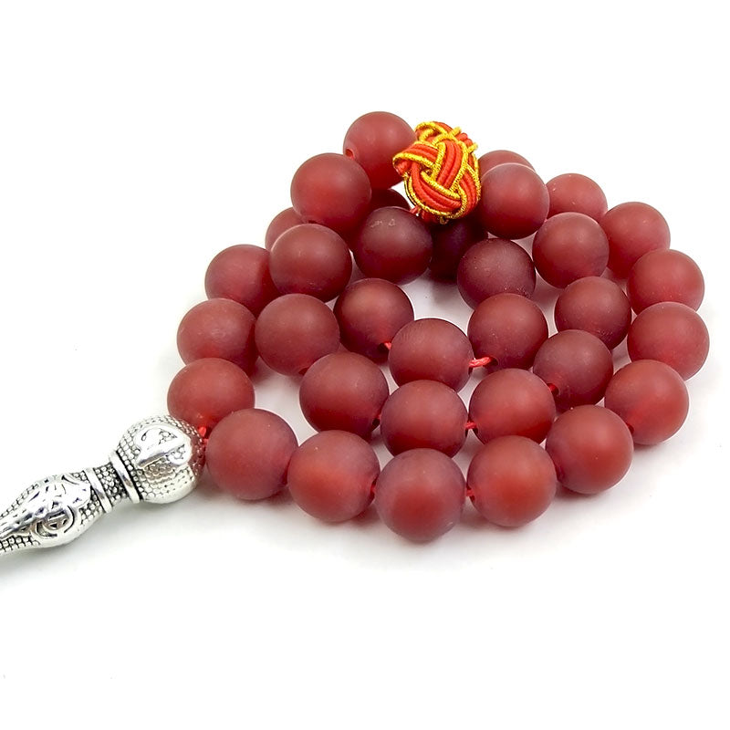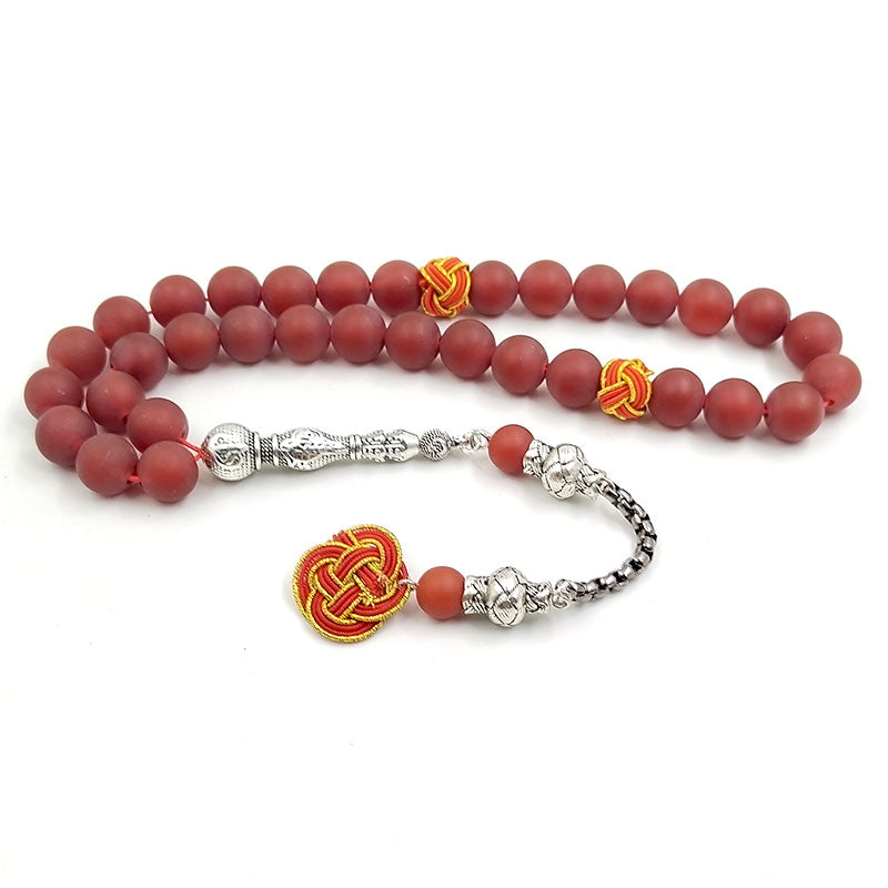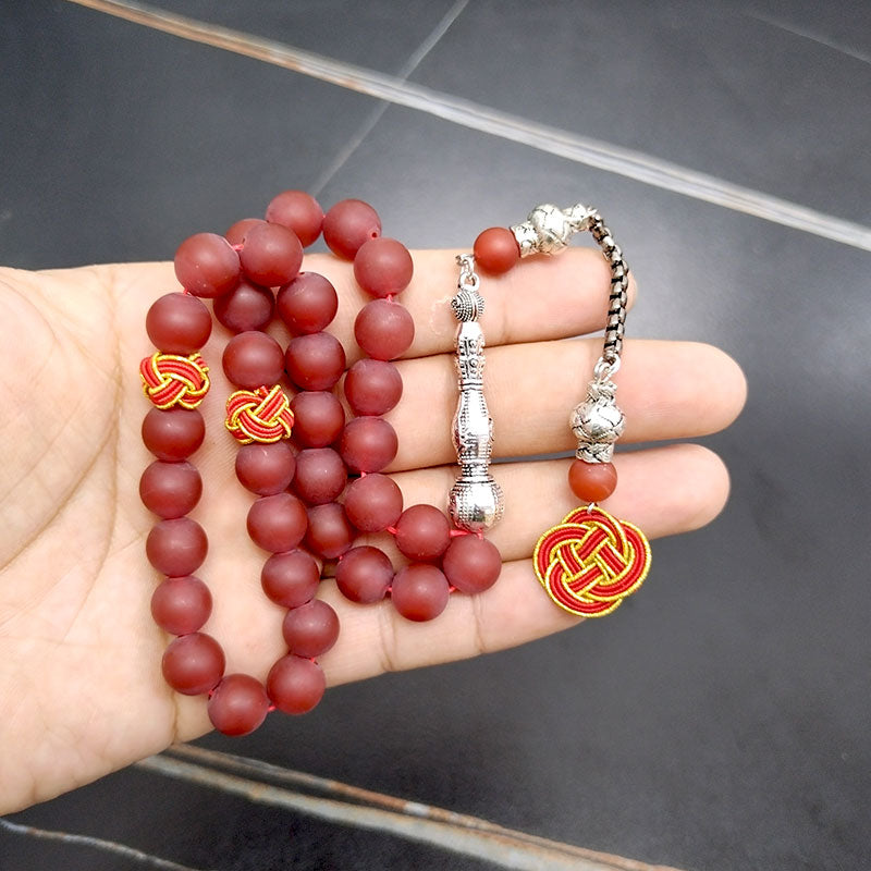 سبحة عقيق احمر مطفي مع طربزونة قطن يدويه
