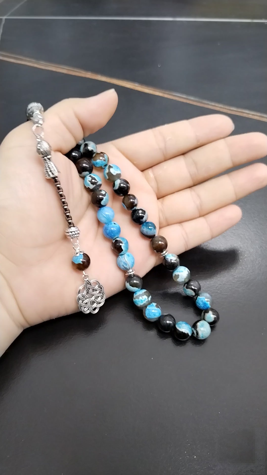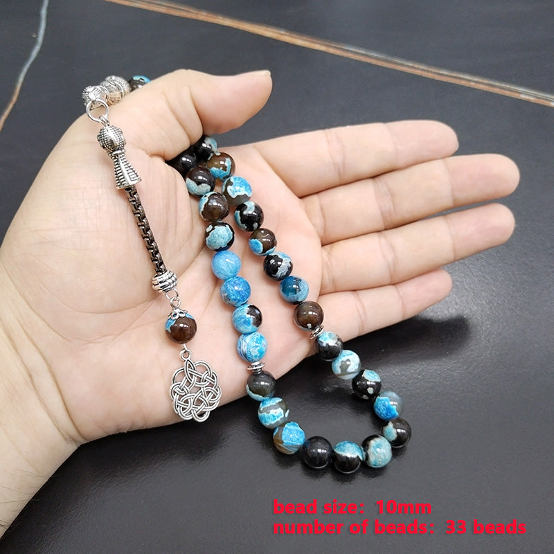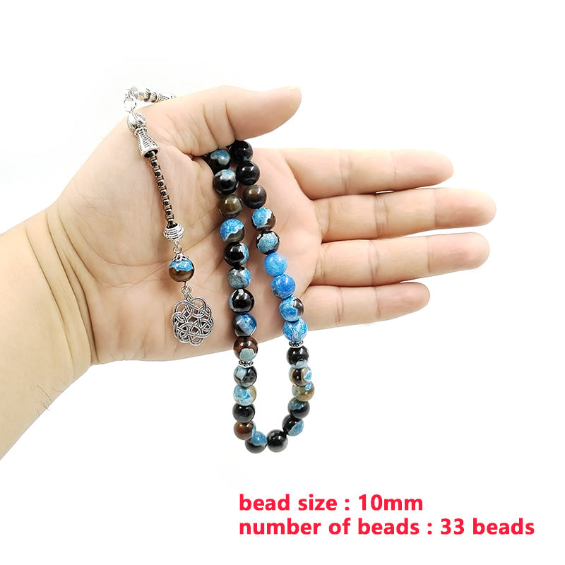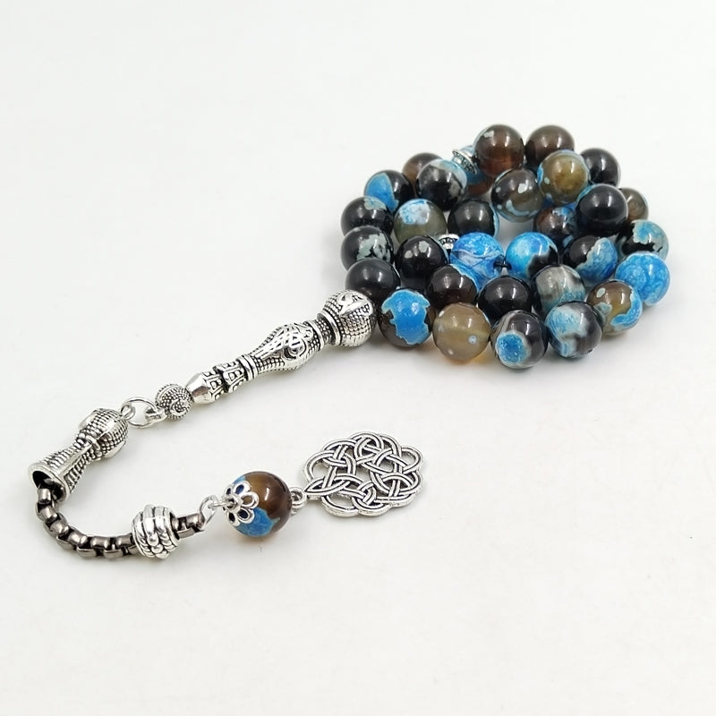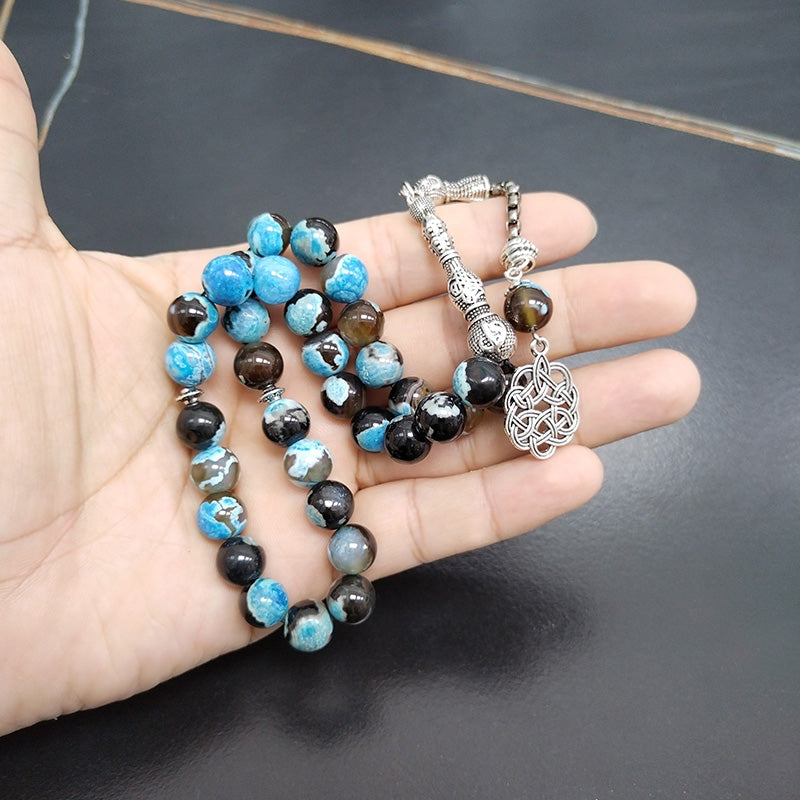سبحة عقيق ازرق مميزه مع طربزونة معدنية