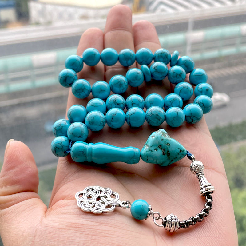 سبحة فخمة حجر فيروز مع الاكسسوار حجر فيروز طبيعي
