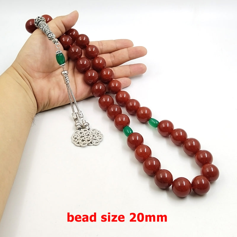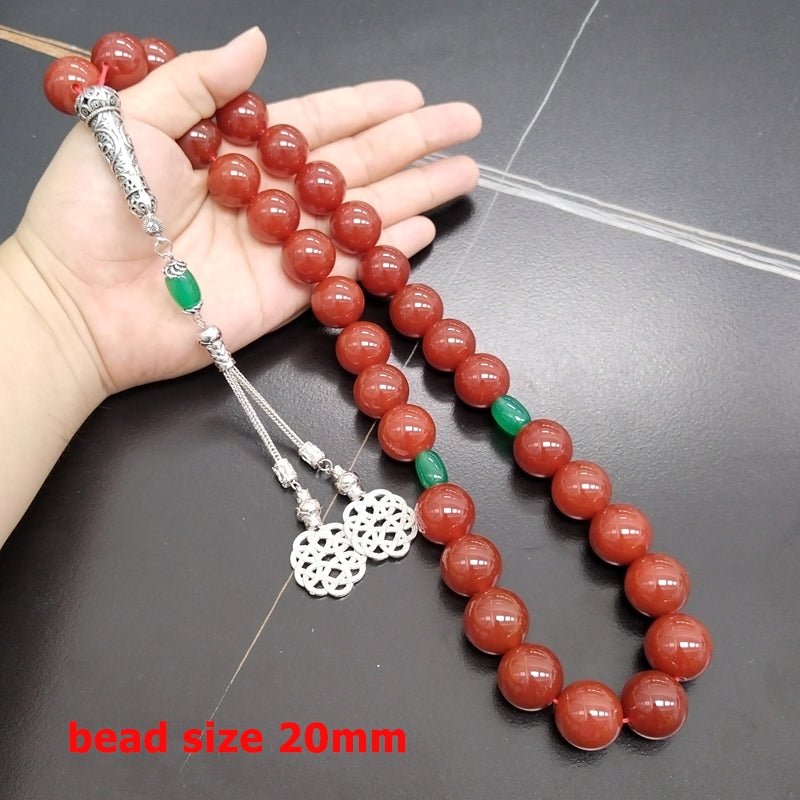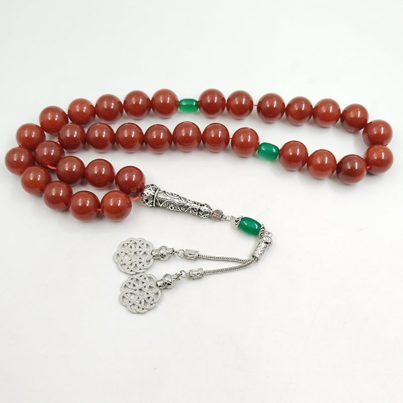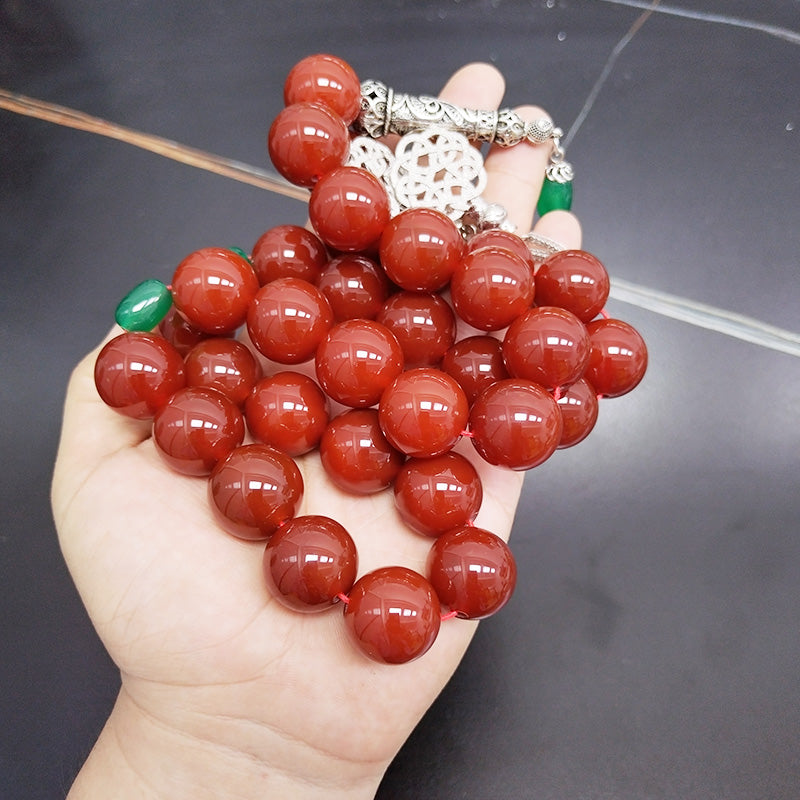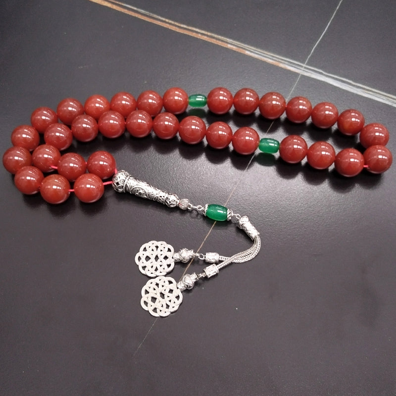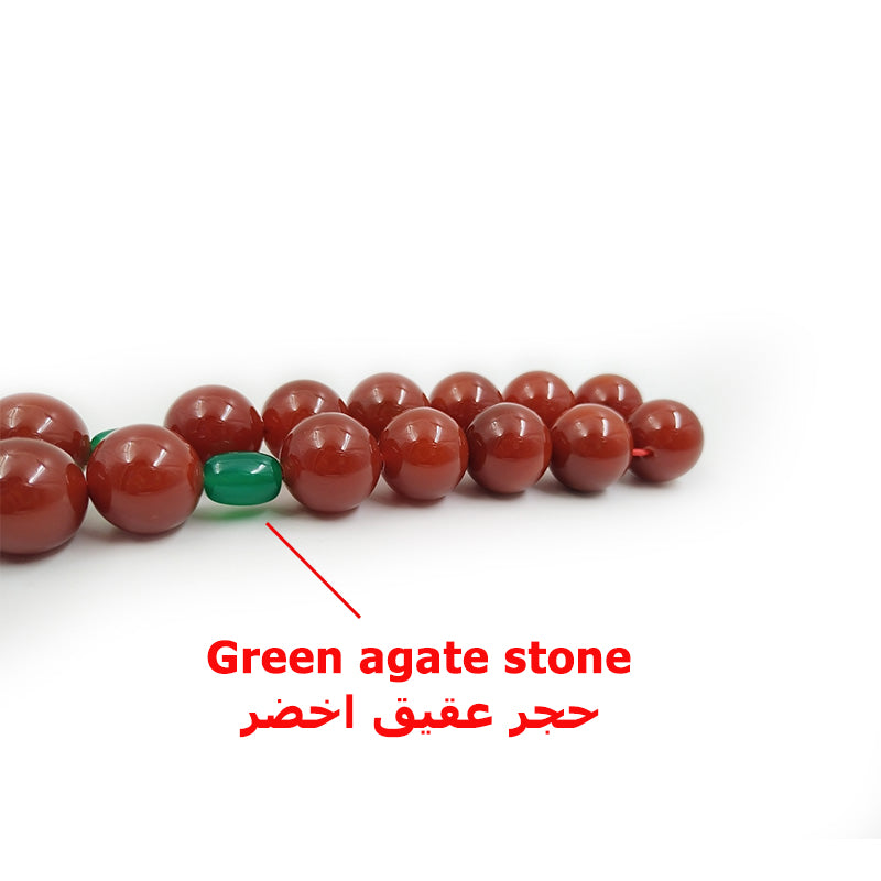 سبحة فخمة عقيق احمر حجم كبير مع حجر عقيق اخضر