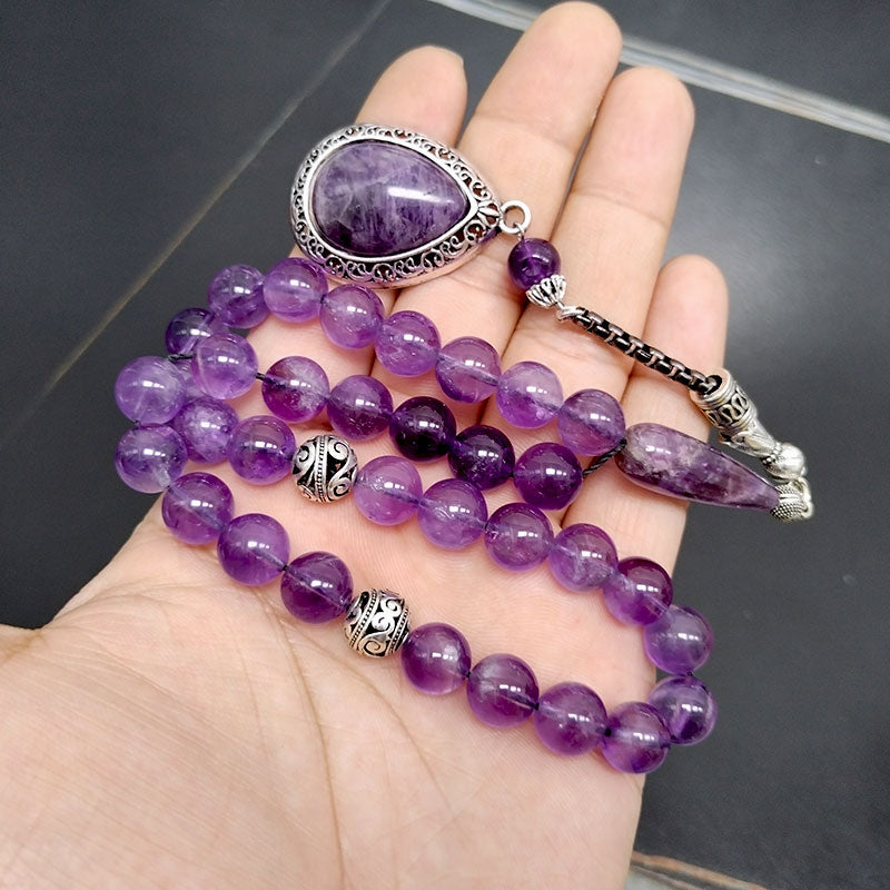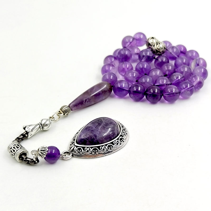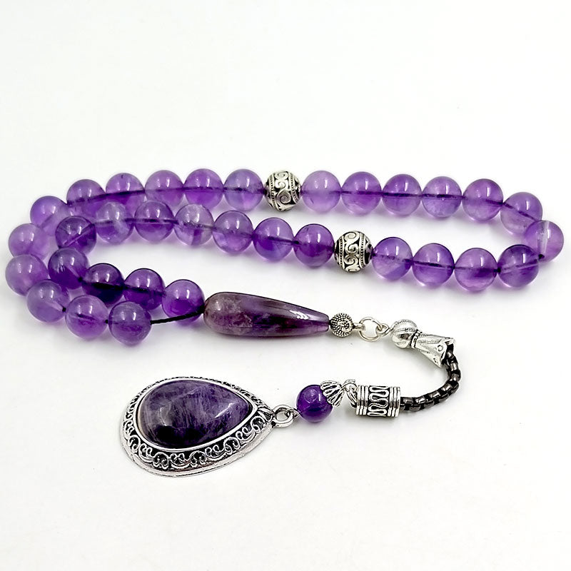 سبحة فخمه حجر جمشت طبيعية مع الاكسسوار جمشت مميزه