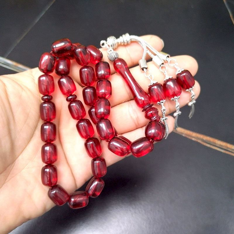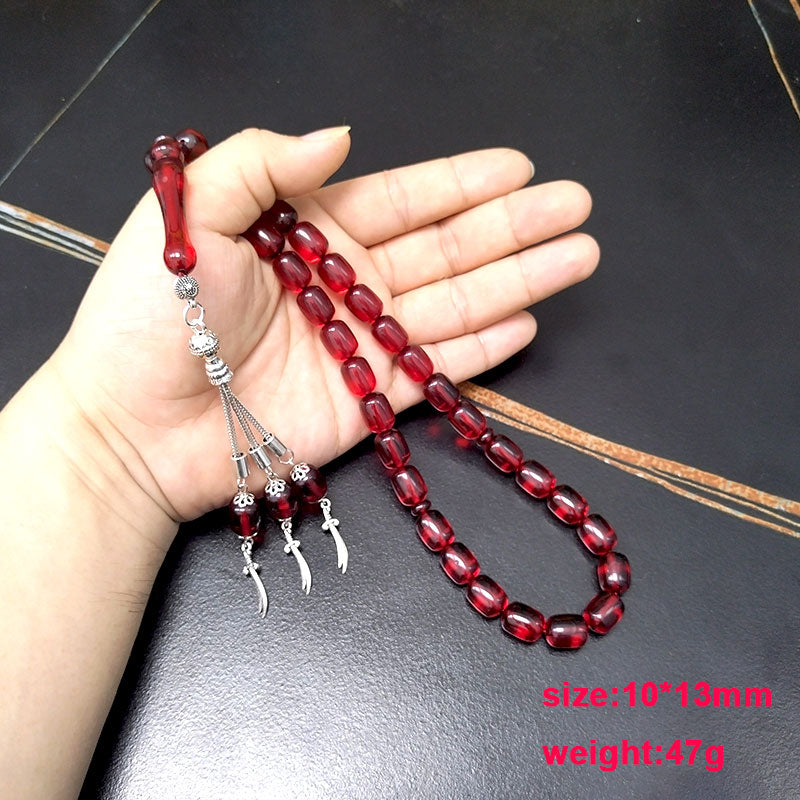 سبحة مستكة احمر مع الاكسسوار سيف معدني