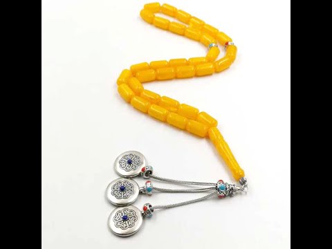سبحة مستكة اصفر مع شرابة فضي تبتيه