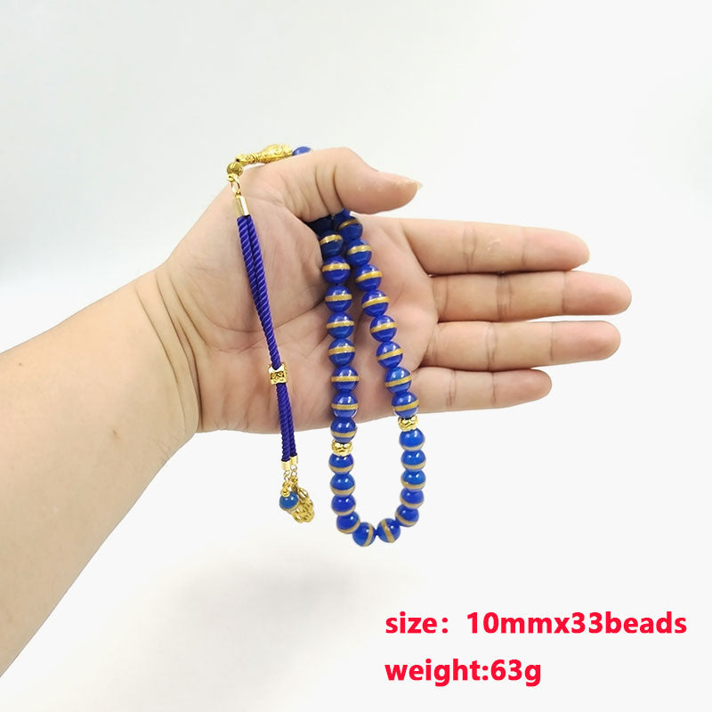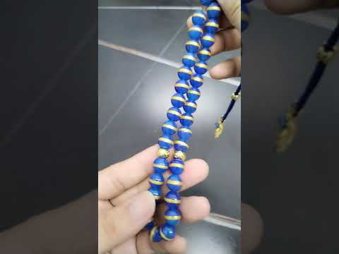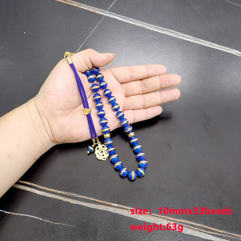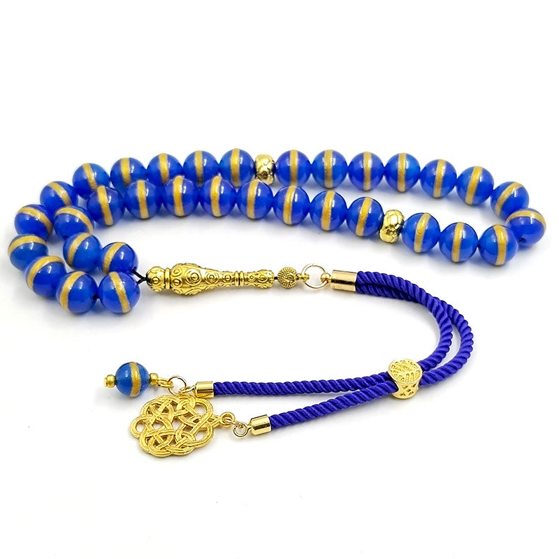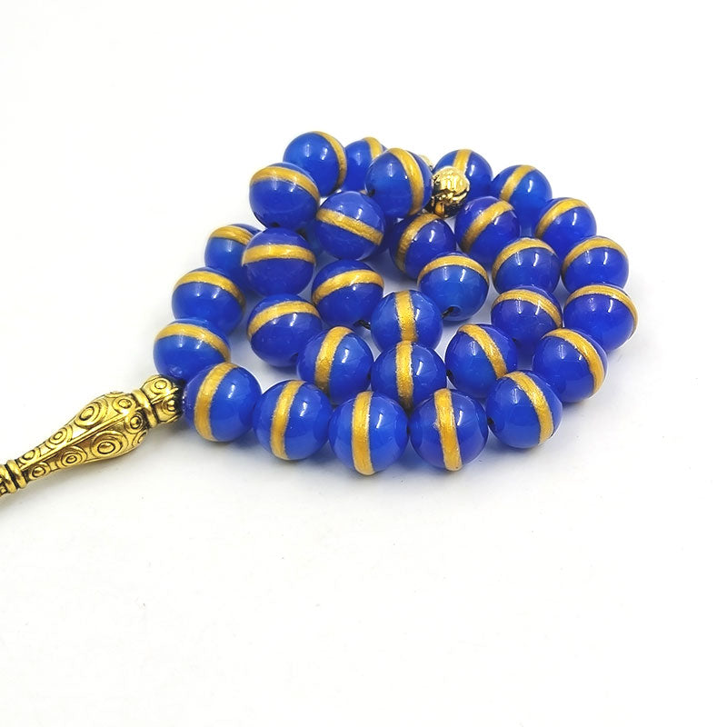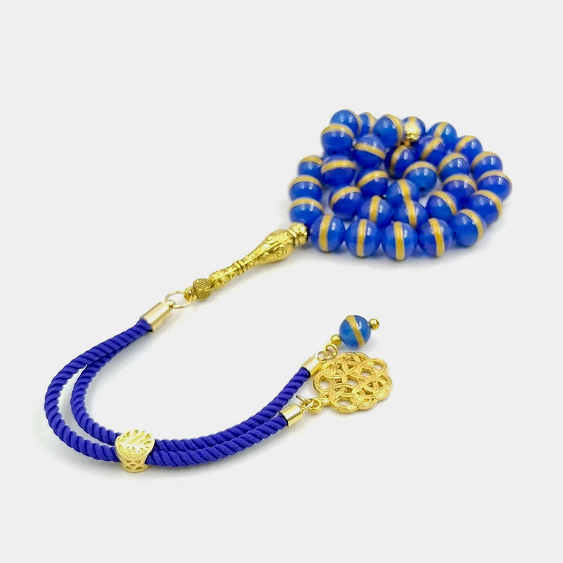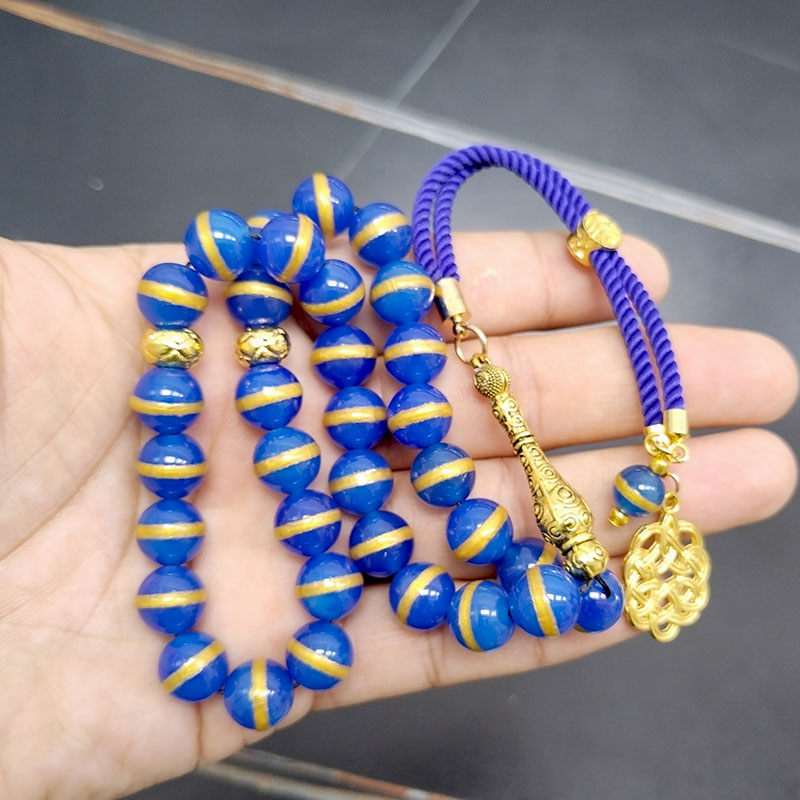 سبحة مميزه عقيق ازرق طبيعي مع خيط ذهبيه