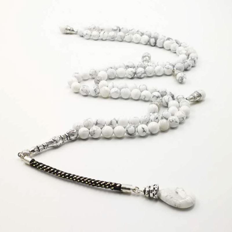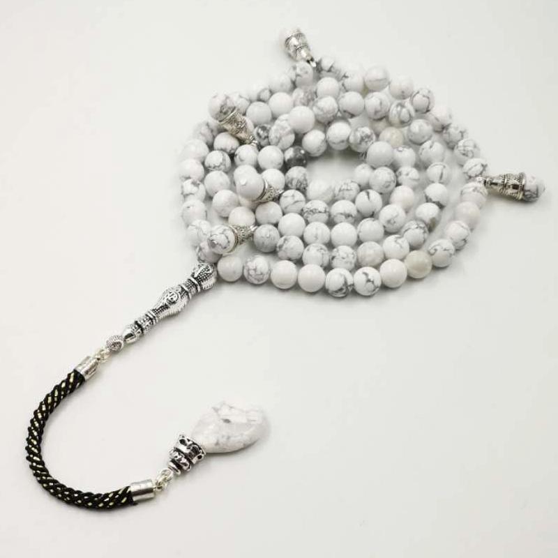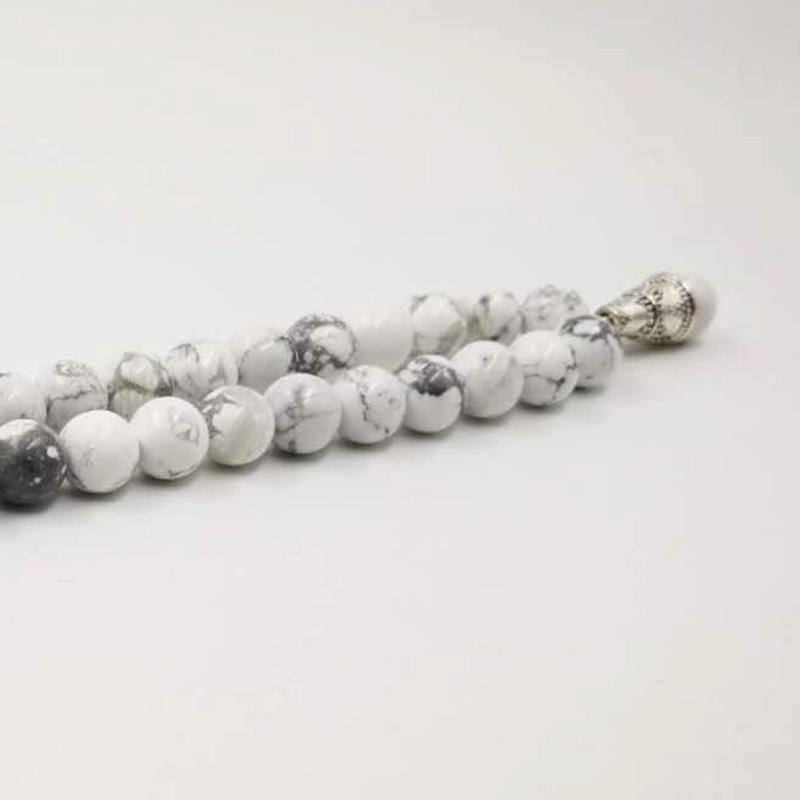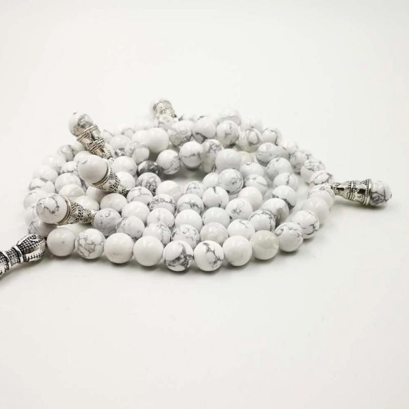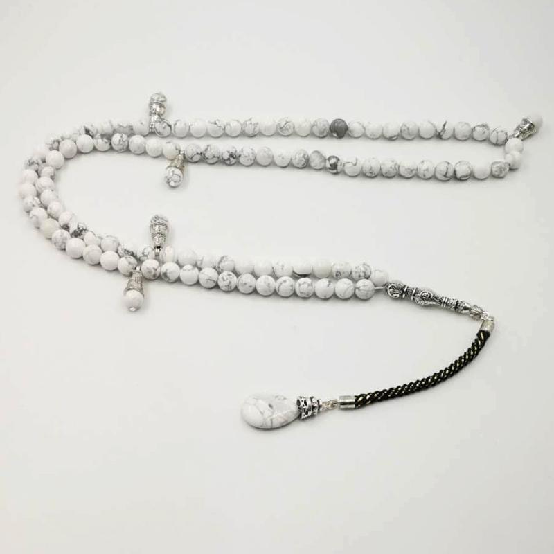 سبحة100 خرزات فيروز ابيض حجر كريم طبيعي