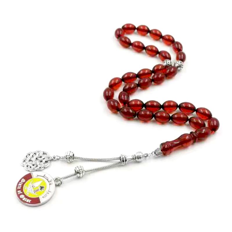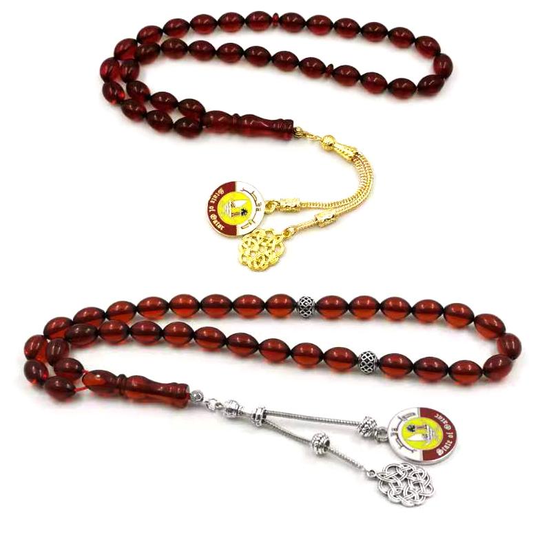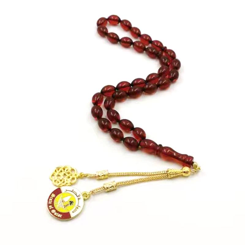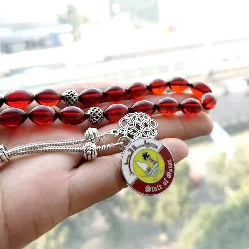 هدية مميزه لعيد الوطني قطر سبحة مستكة احمر مع شعار قطر ذهبي و فضي