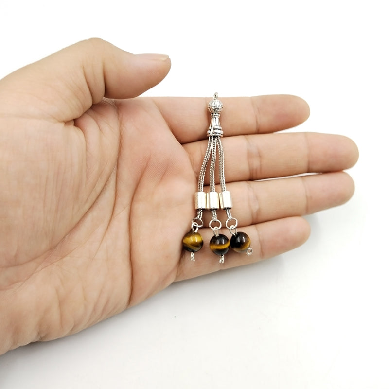 إكسسوارات السبحة شرابة معدنية بالحجر عين النمر