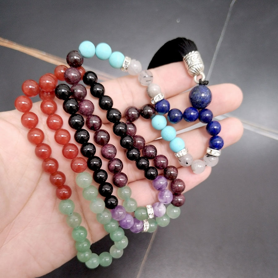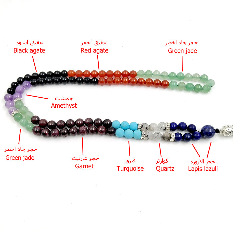 سبحة او قلادة 100 حبه الاحجار متنوعة طبيعي