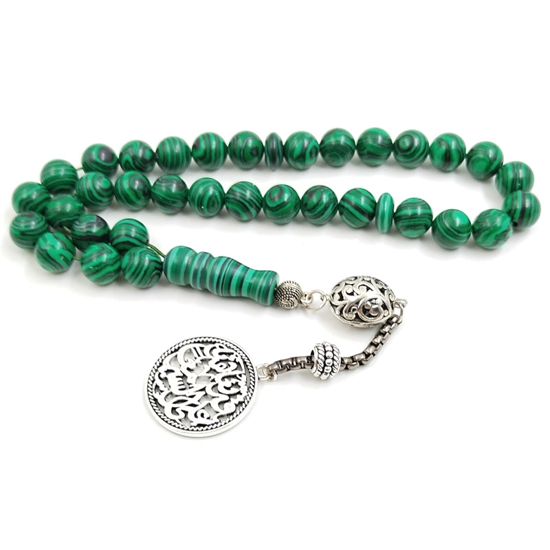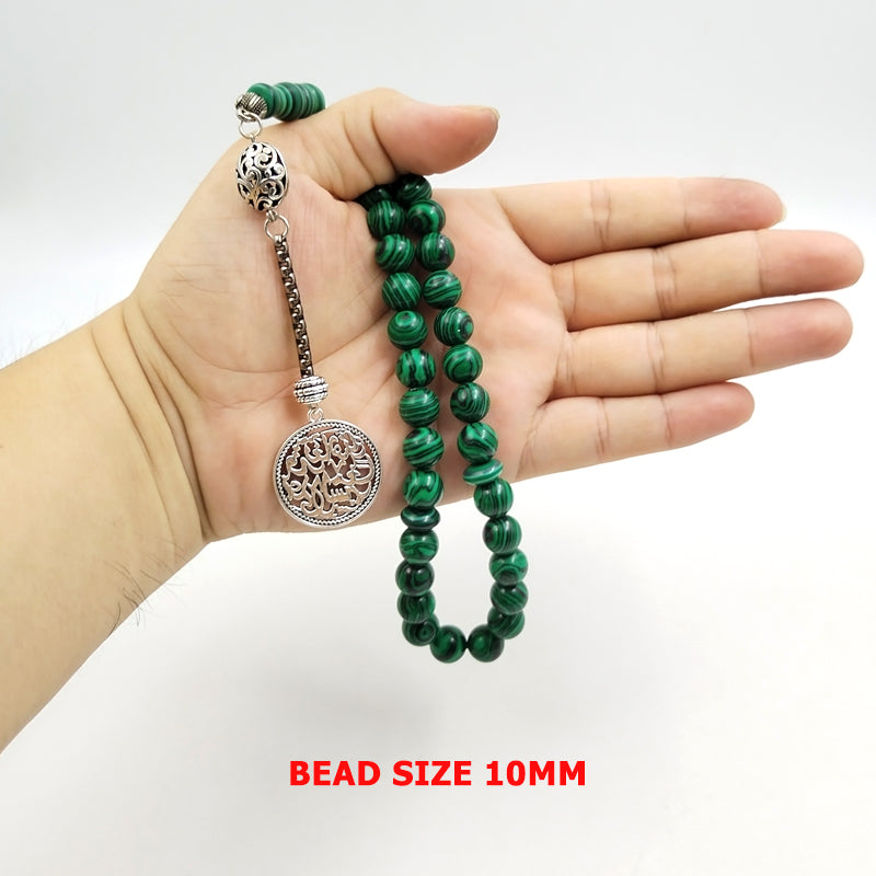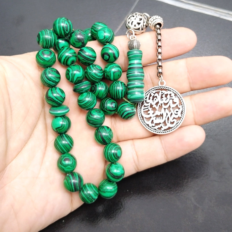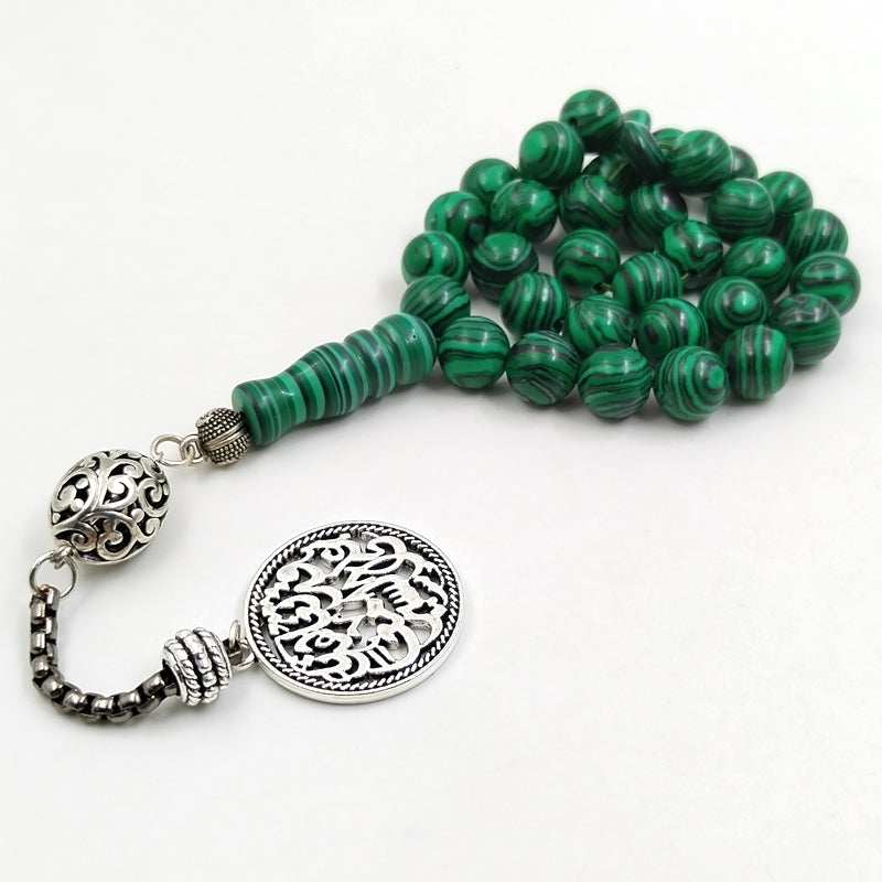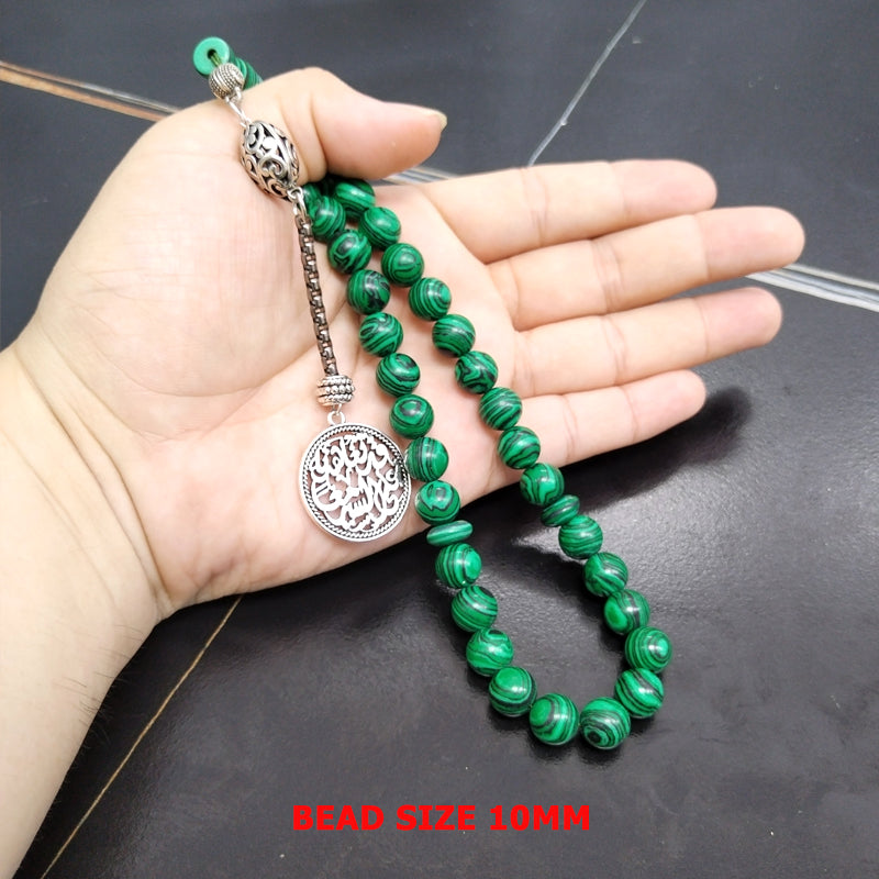 سبحة حجر الملاكيت مع الاكسسوار العربي