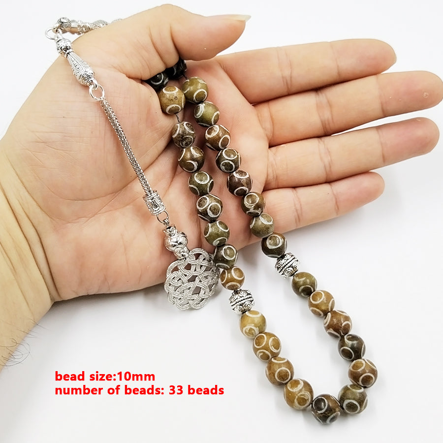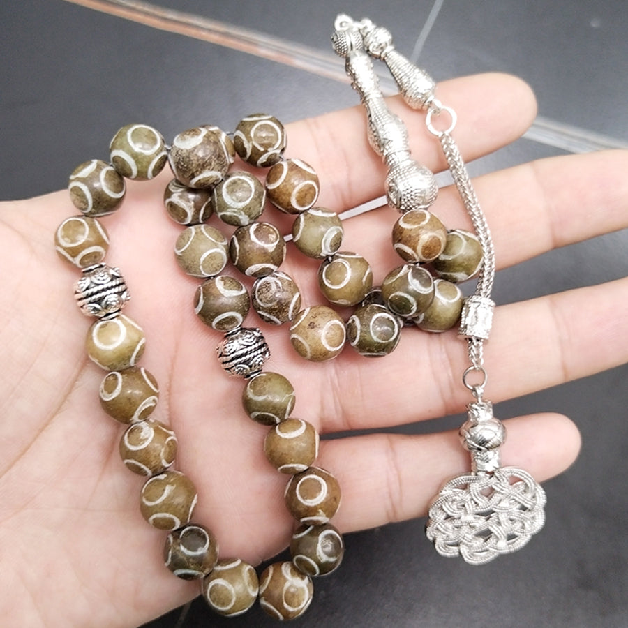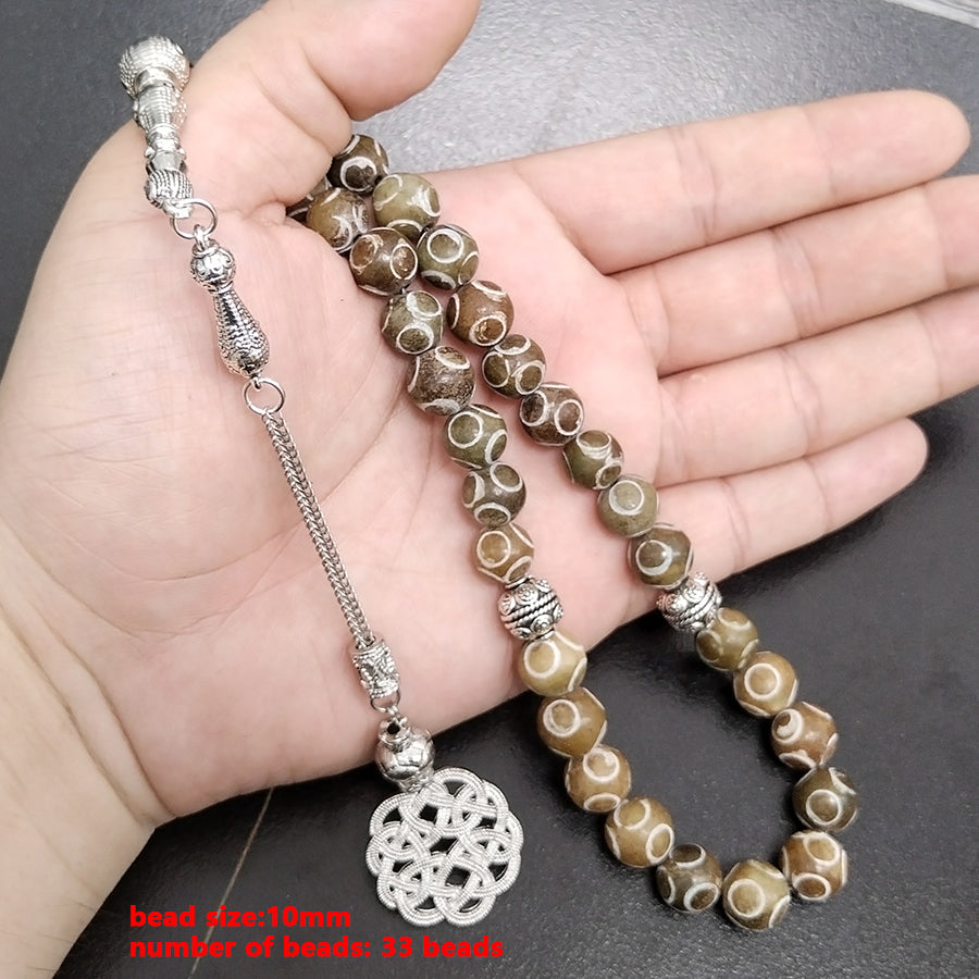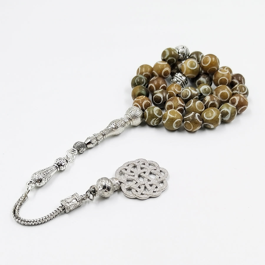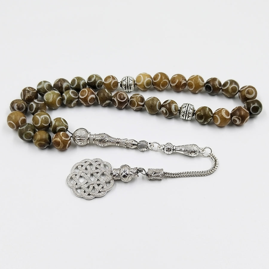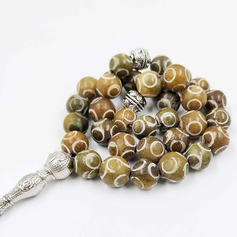 سبحة حجر جاد طبيعي مع رسوم يدويه