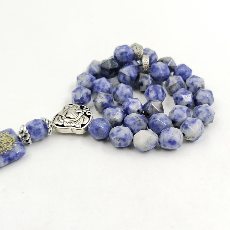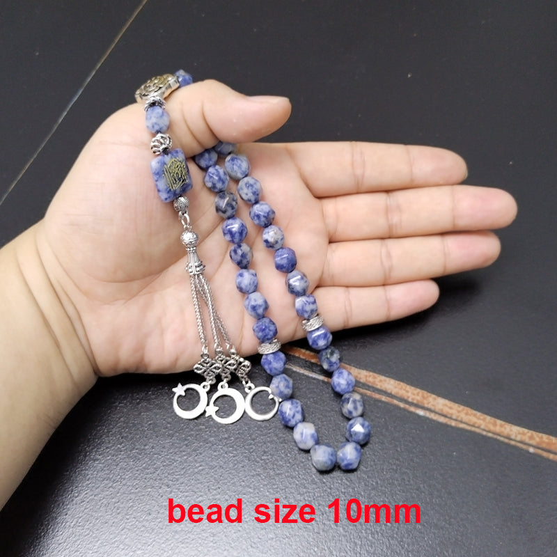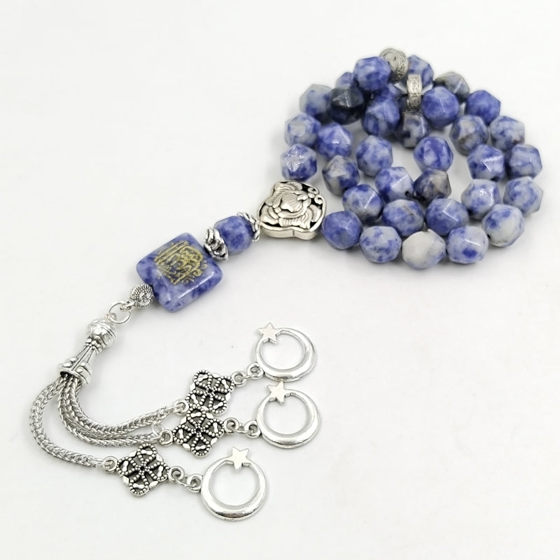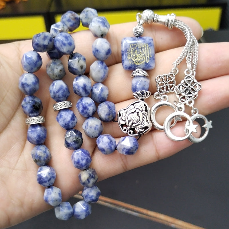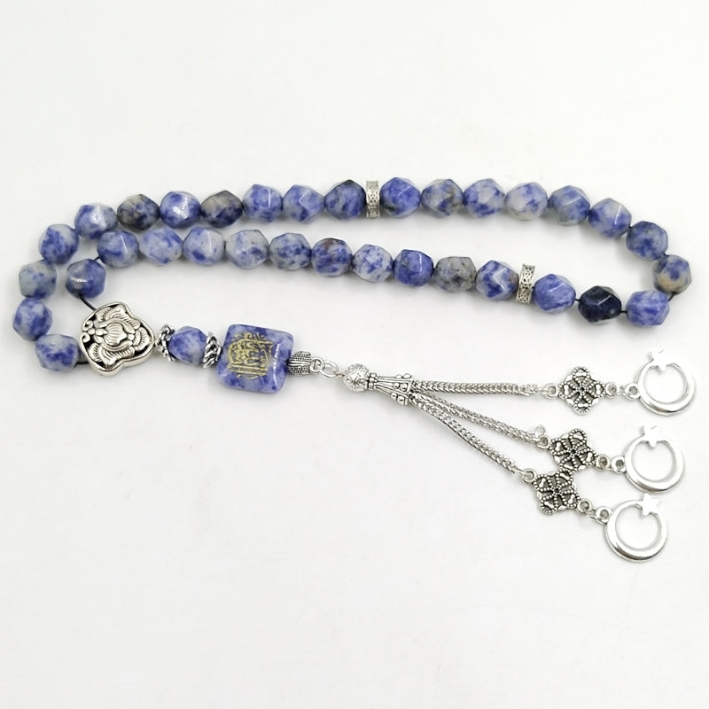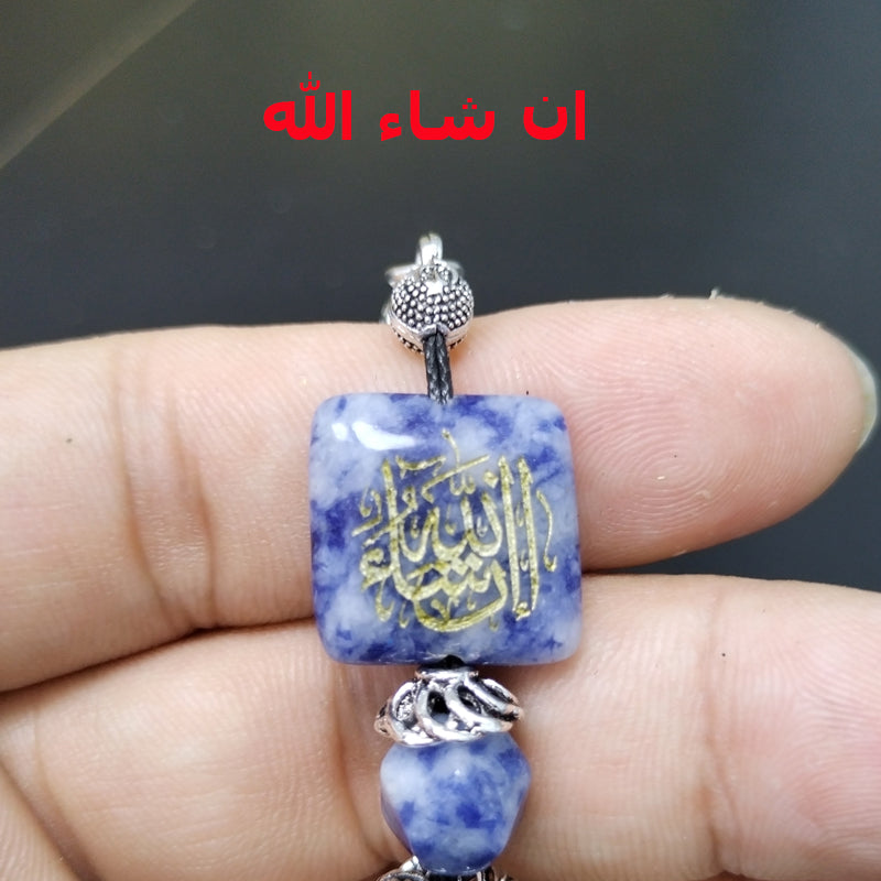 سبحة حجر جاسبر منقطة ازرق مع نفش كتاب " ان شاء الله "