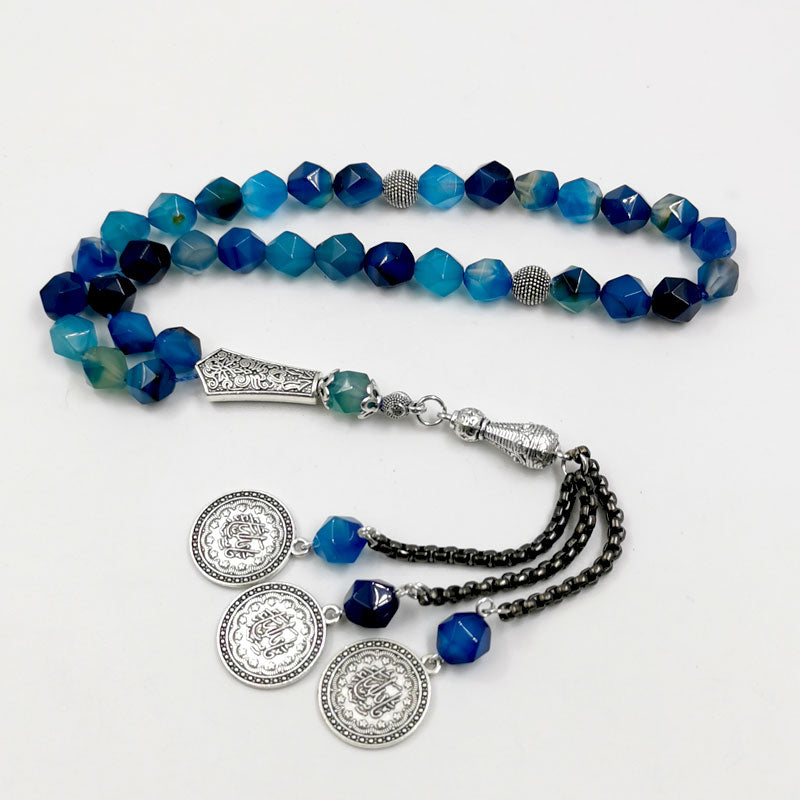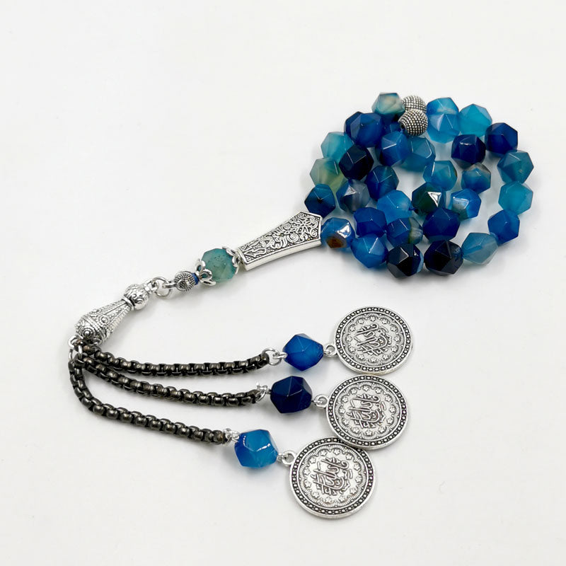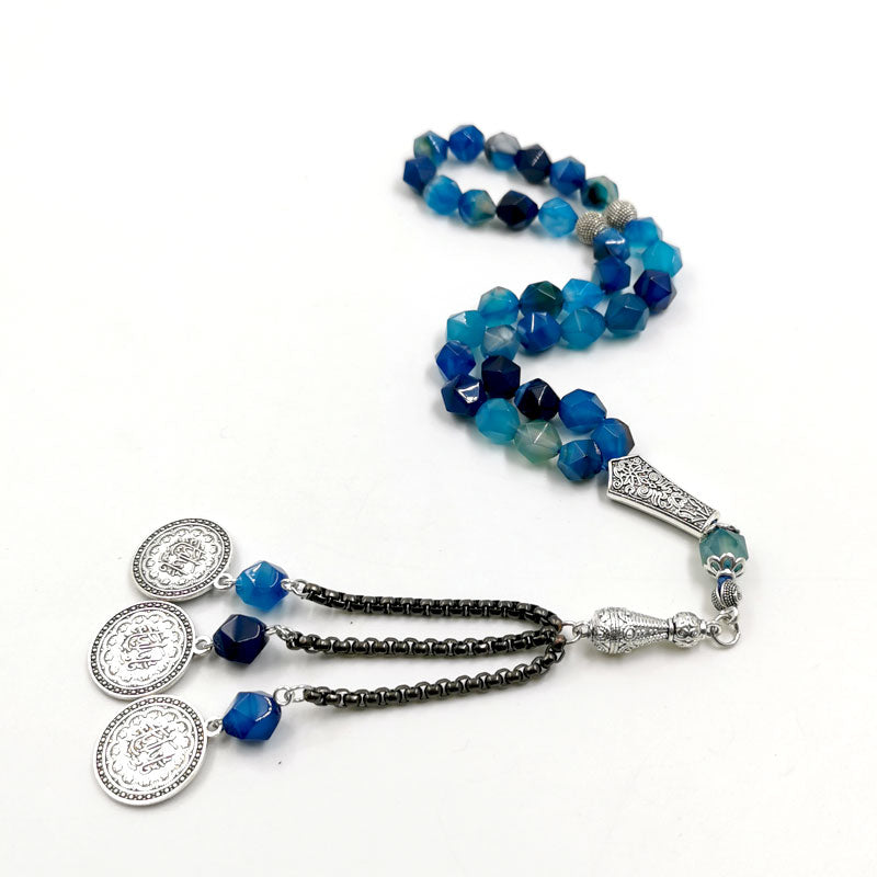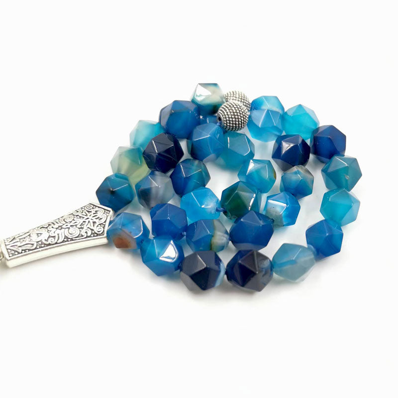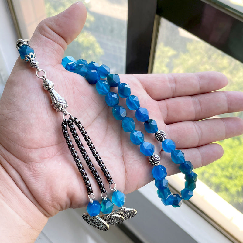 سبحة رجاليه الشكل المعين عقيق ازرق طبيعي