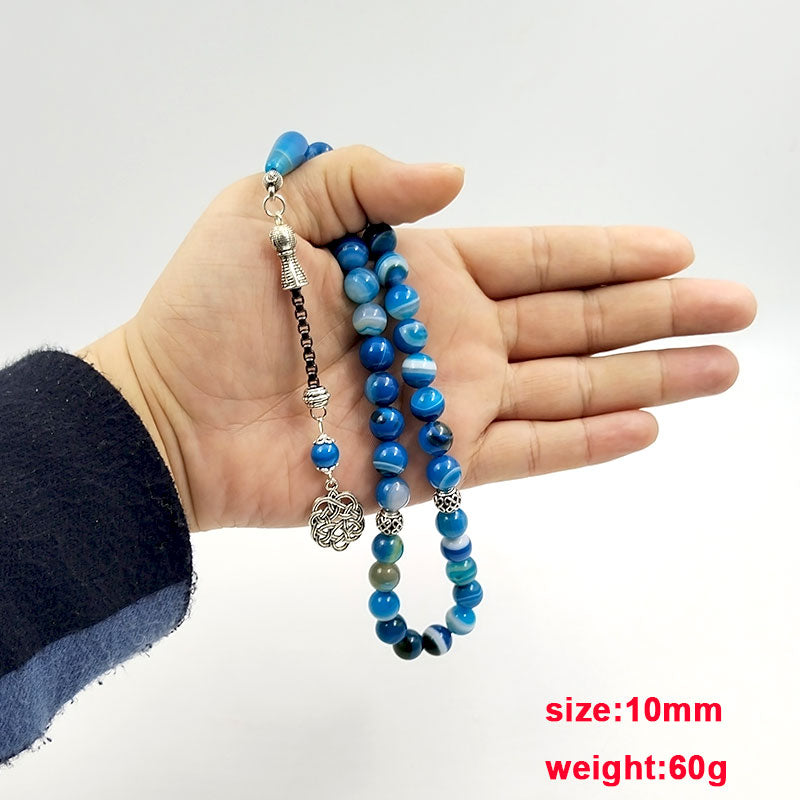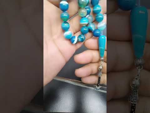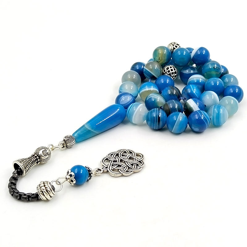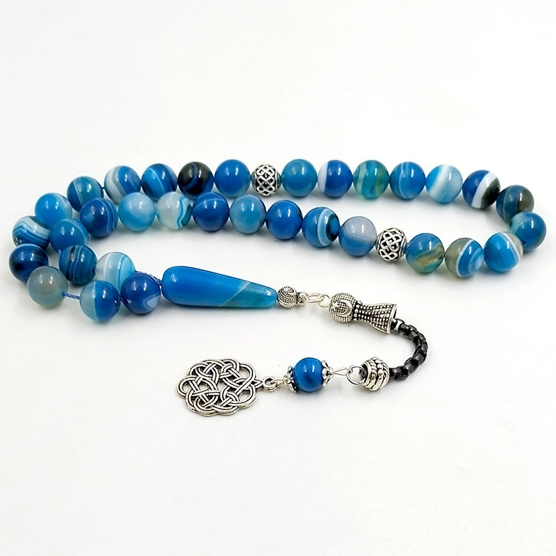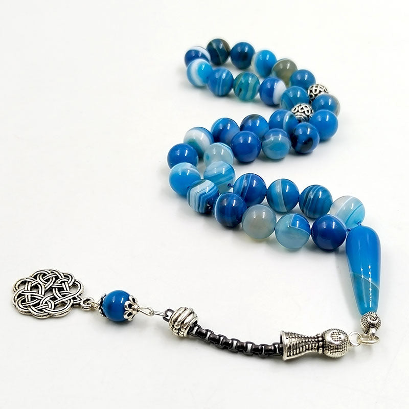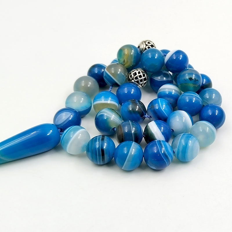 سبحة رجاليه عقيق ازرق مخططة طبيعي