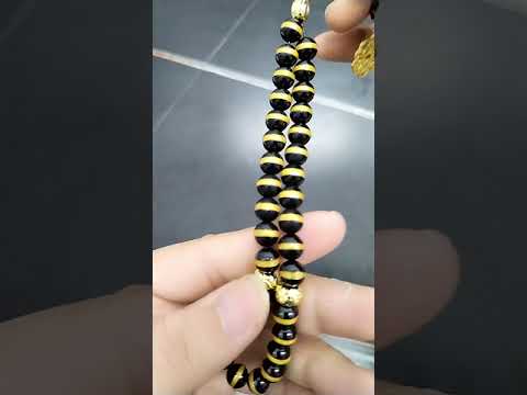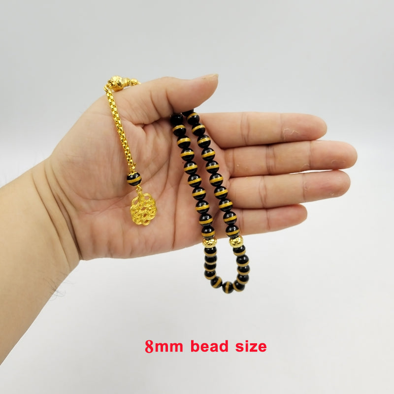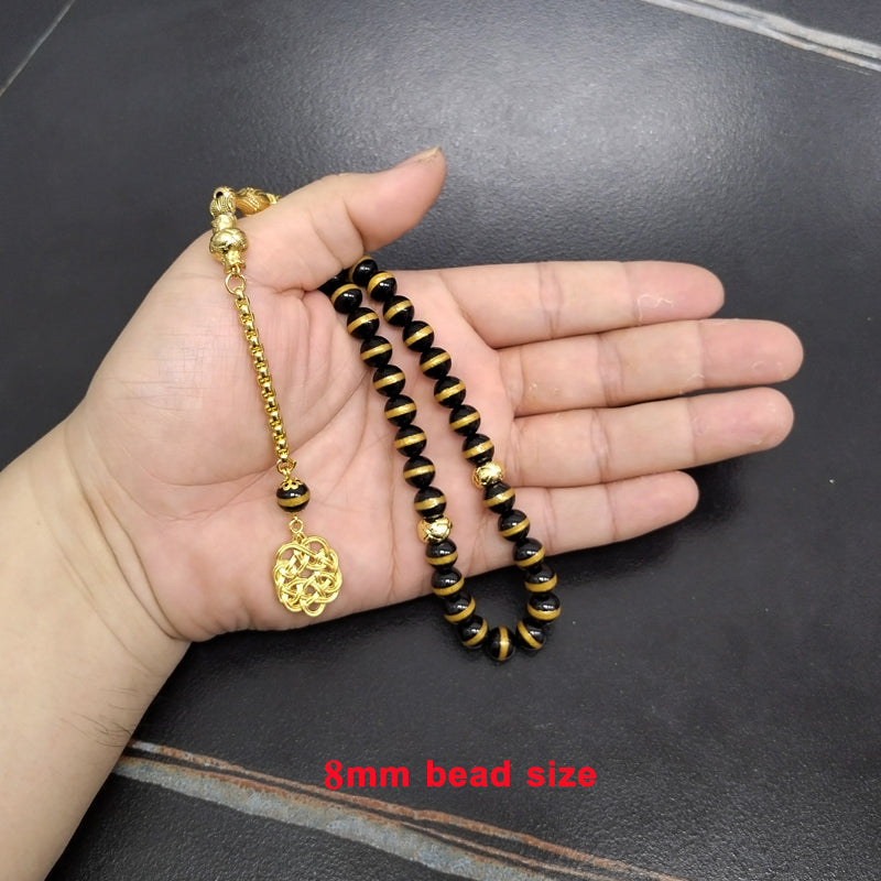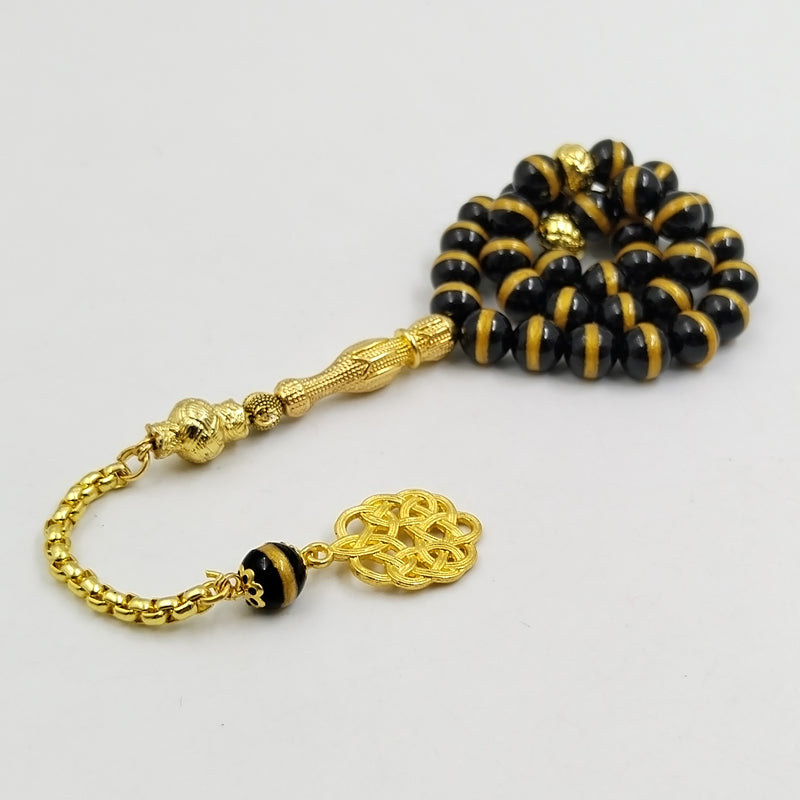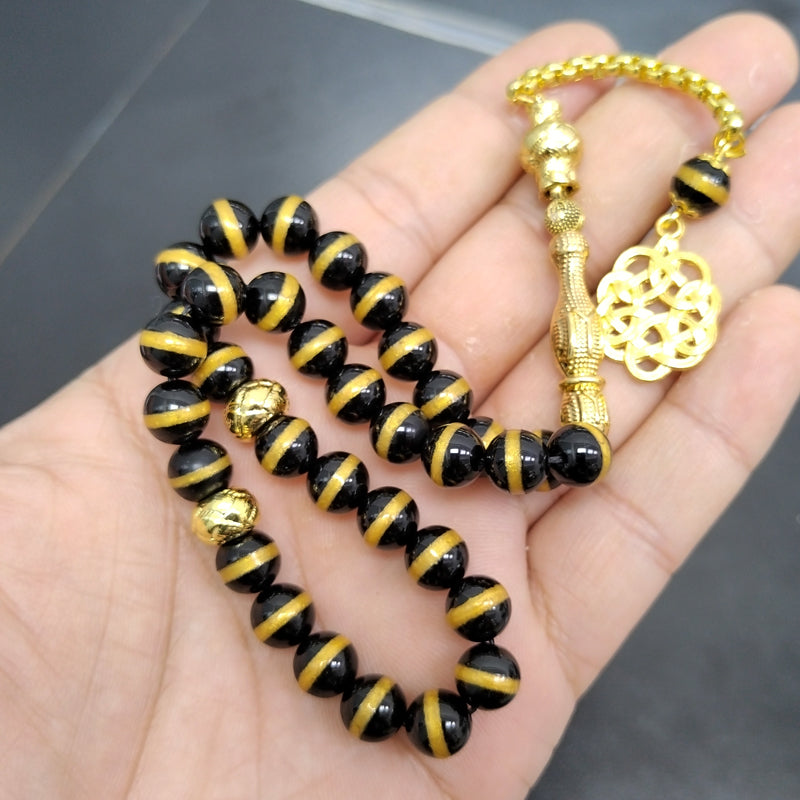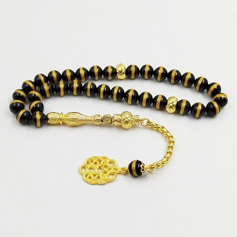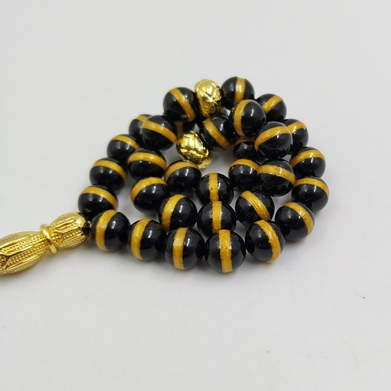 سبحة فخمه عقيق اسود بالمقلم الذهبيه