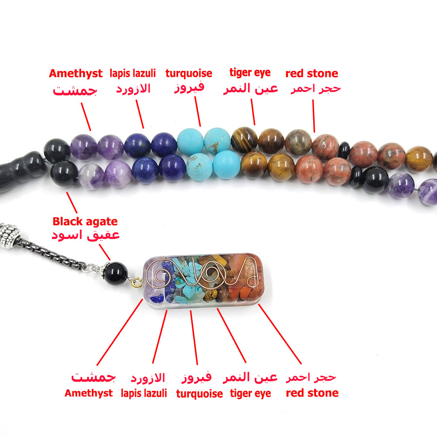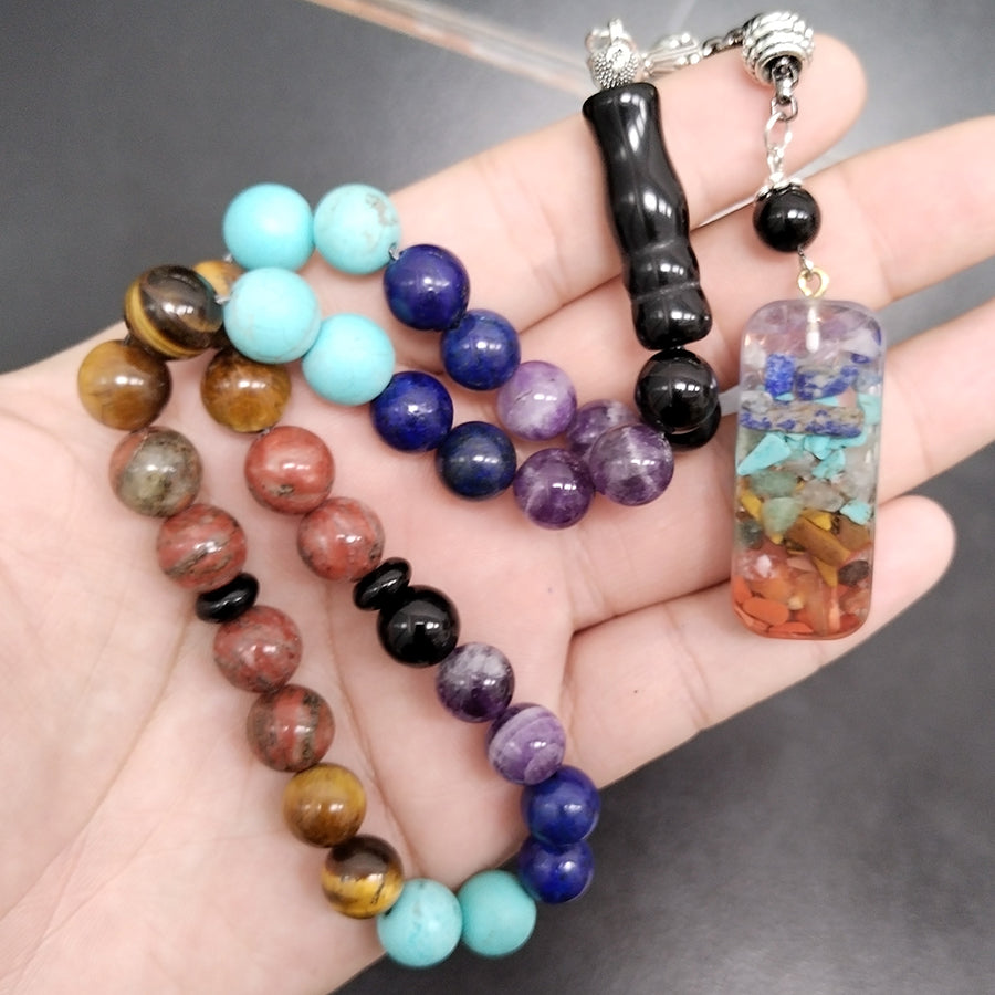 سبحة فخمه من احجار كريمة منتوعة طبيعي