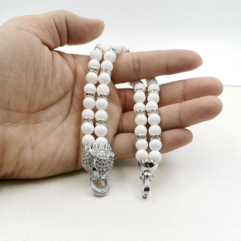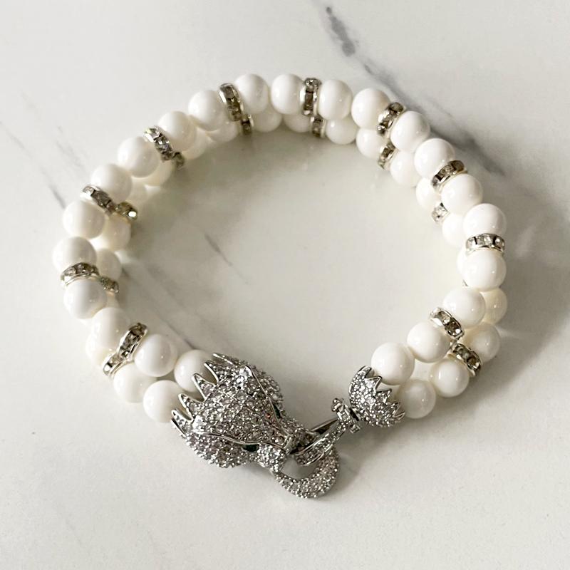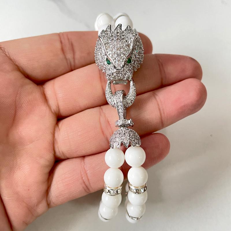 سوار مميزه صدف بحري ابيض مع الاكسسوار موضة راس النمر