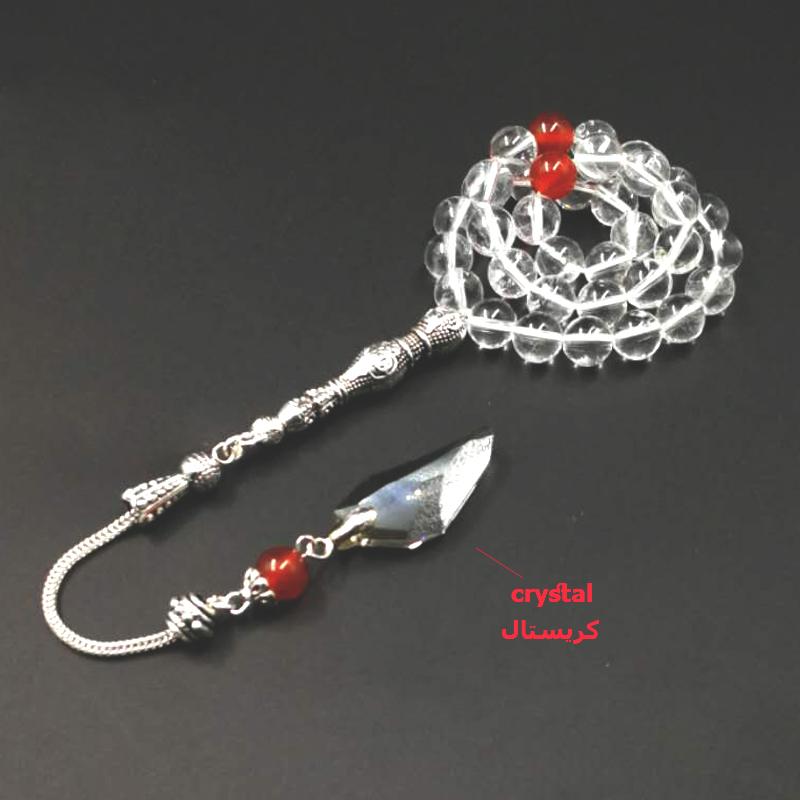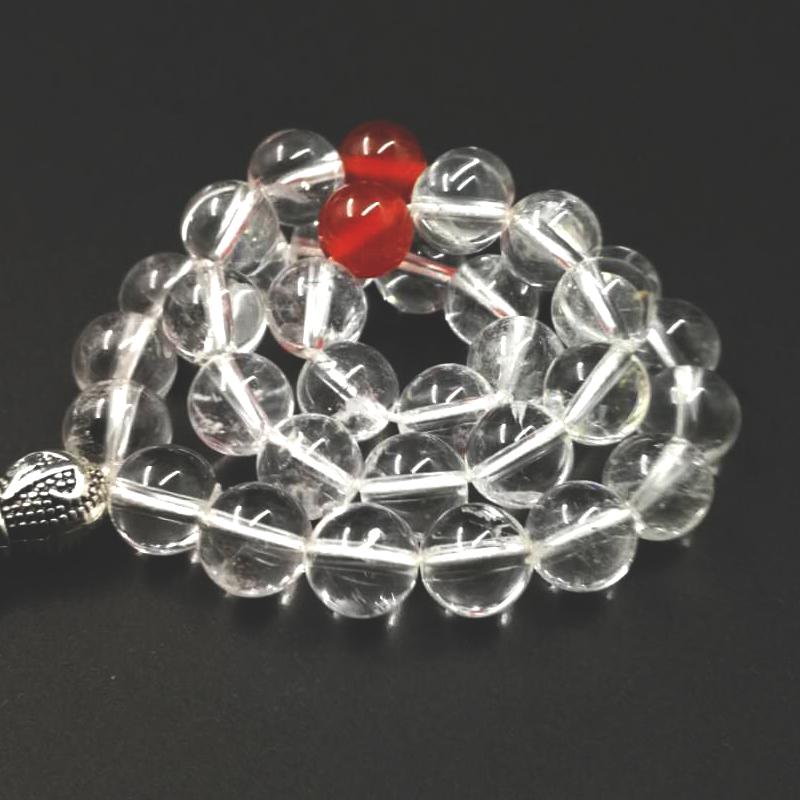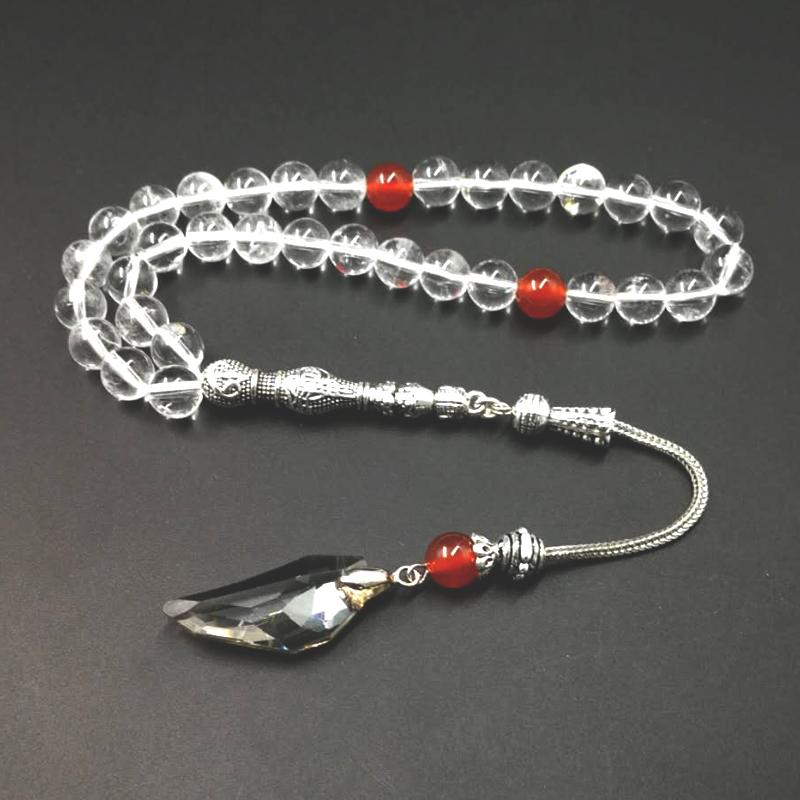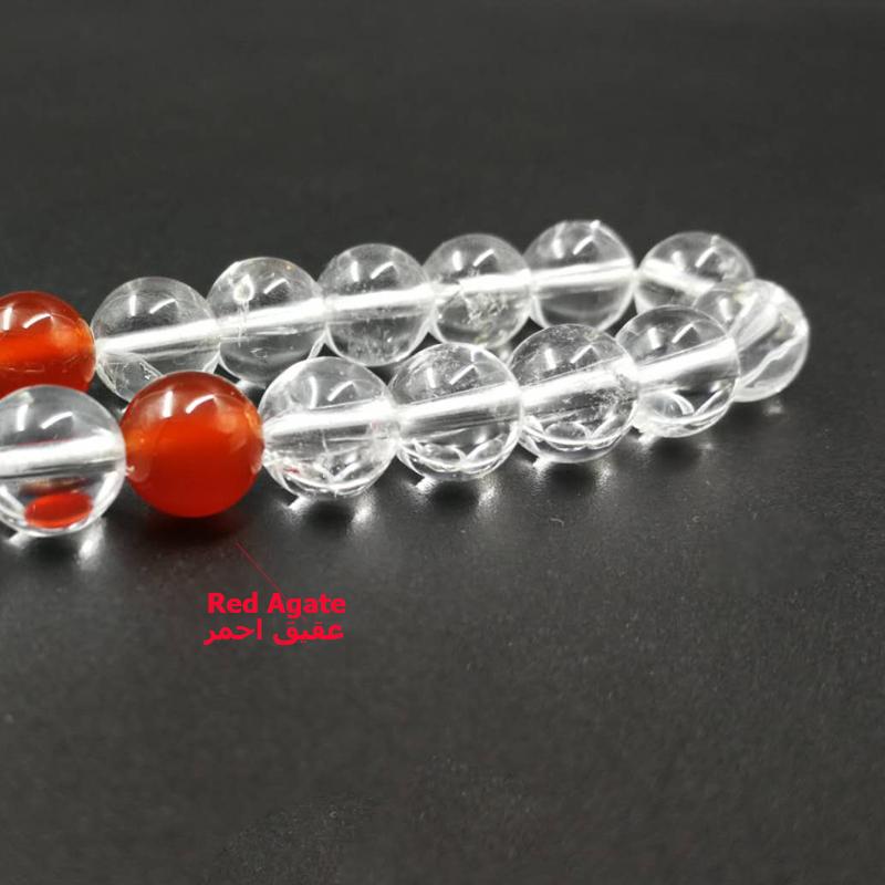سبحة كريستال شفافي مع عقيق احمر طبيعي