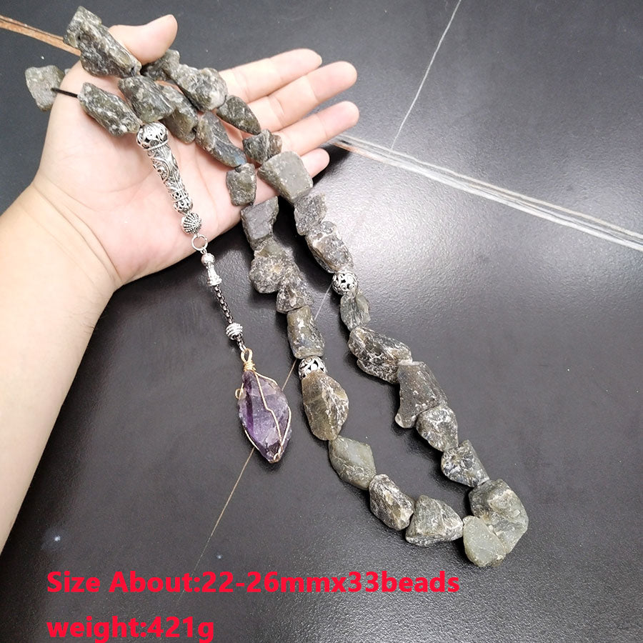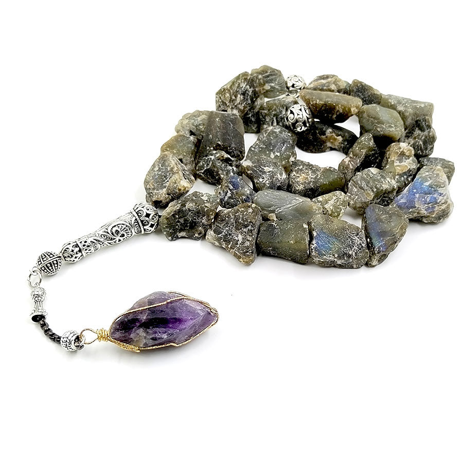 سبحة حجر اللابرادوريت طبيعي مع حجر جمشت