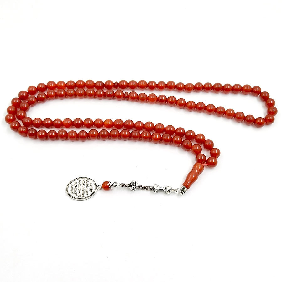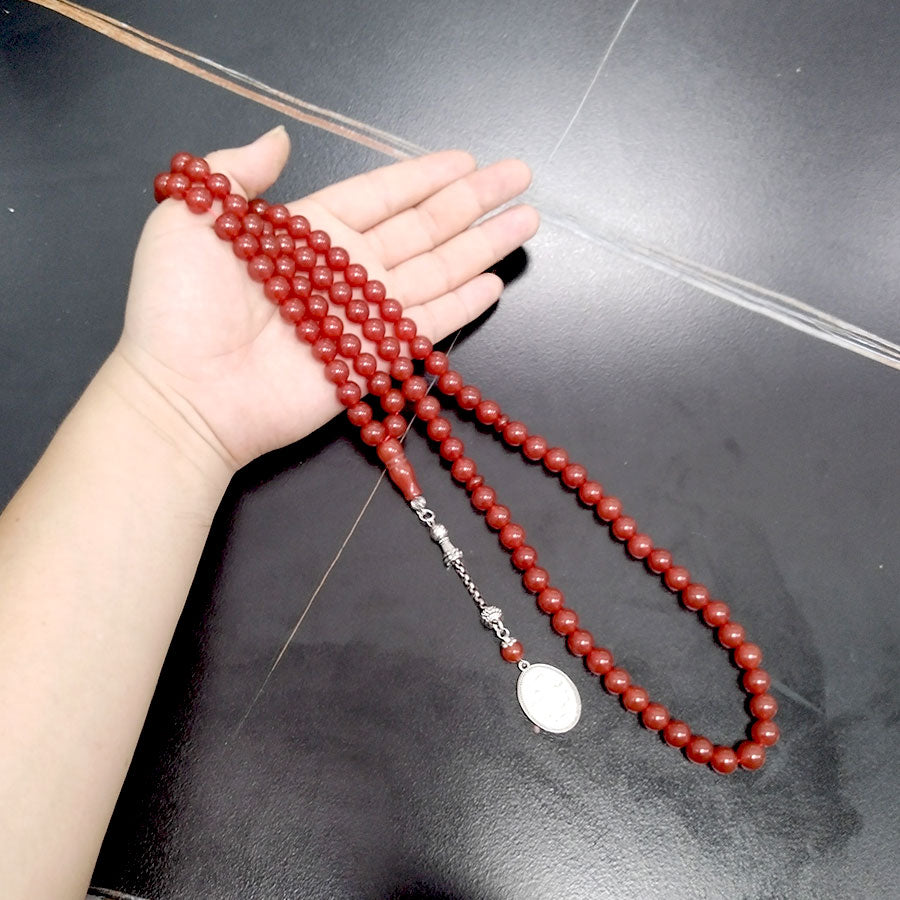 سبحة حجر عقيق احمر 99 خرزات
