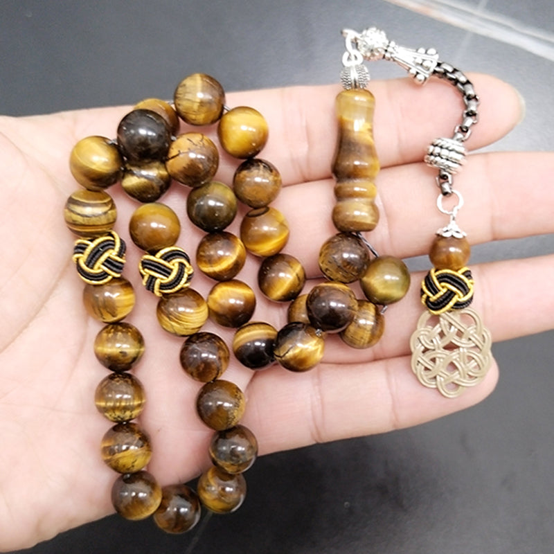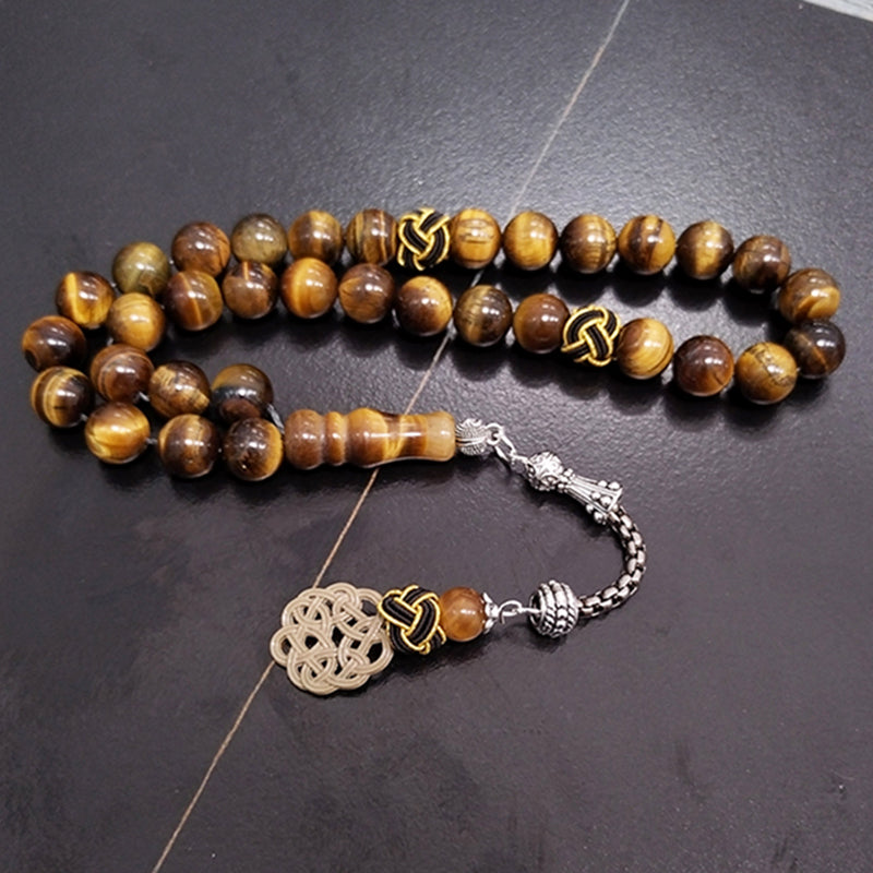 سبحة حجر عين النمر اصفر طبيعي مع طربزونة يدويه