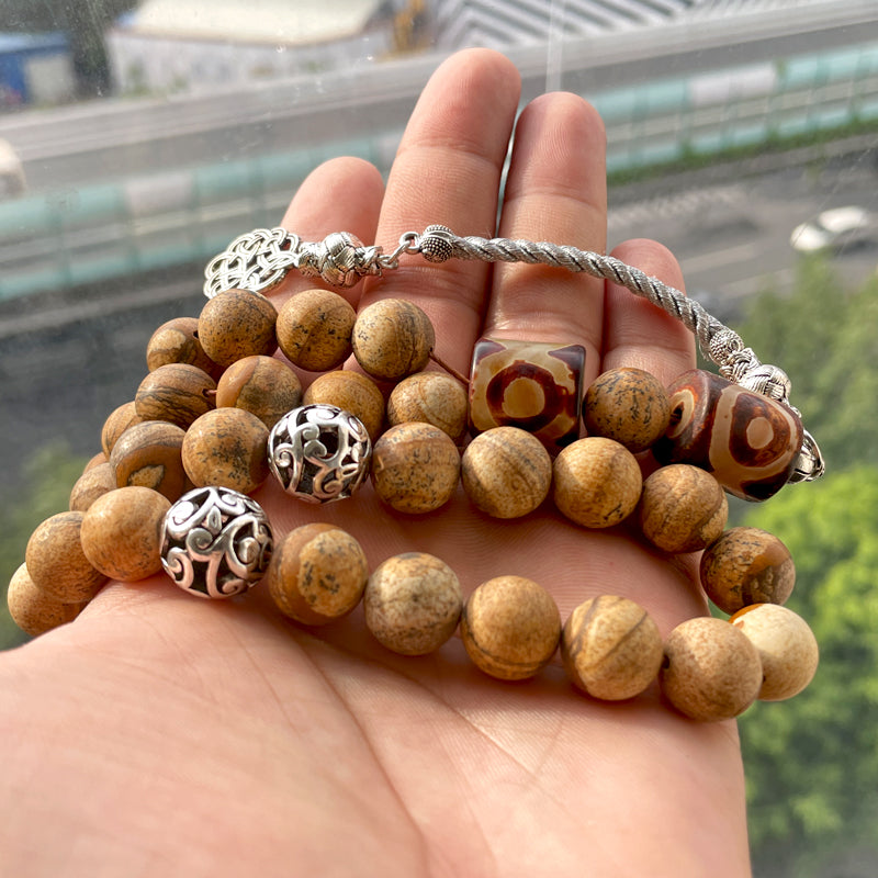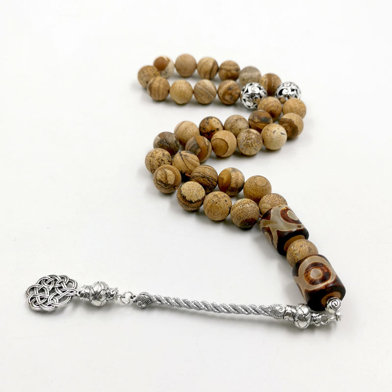 سبحة رجاليه حجر جاسبر مع عقيق عيون تبتيه