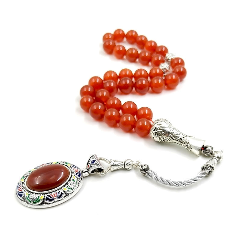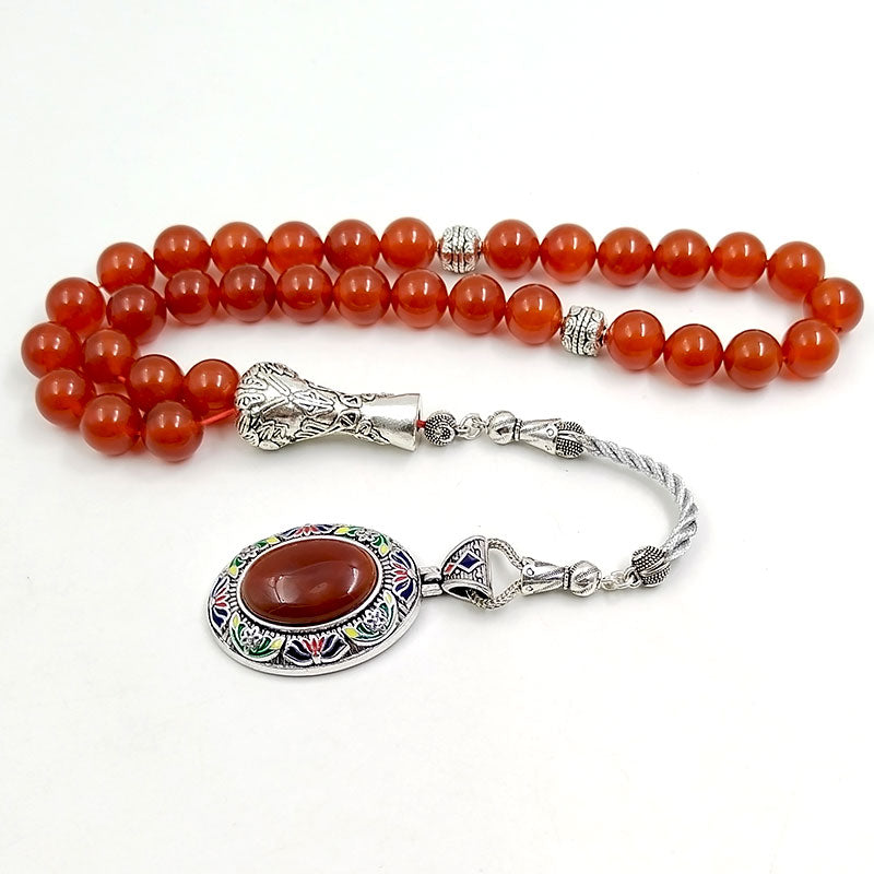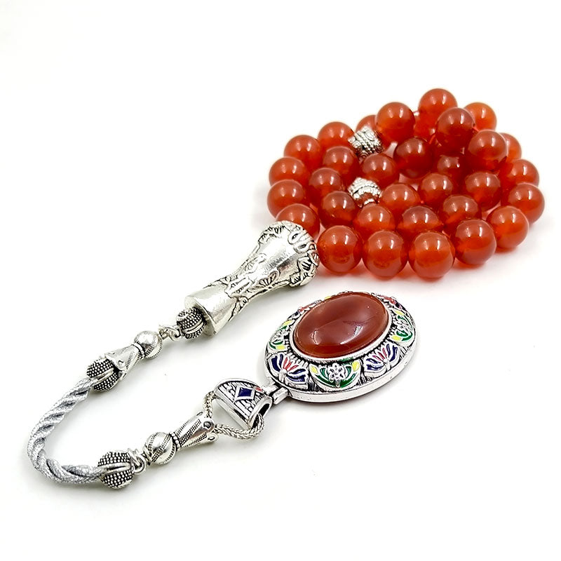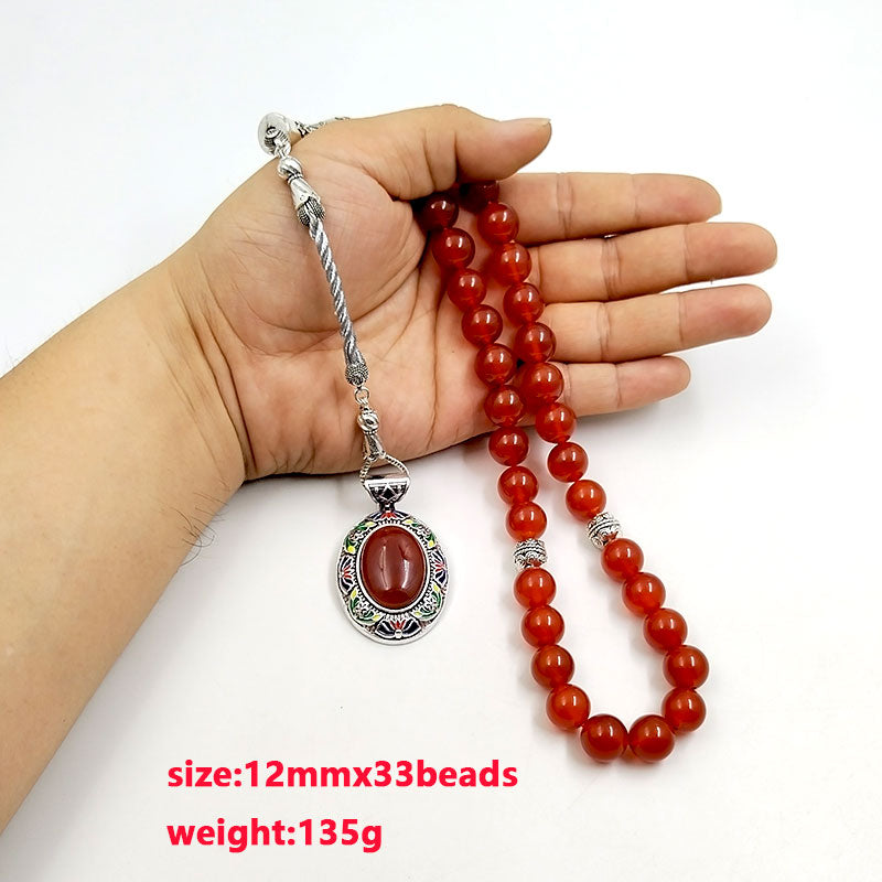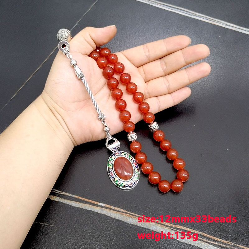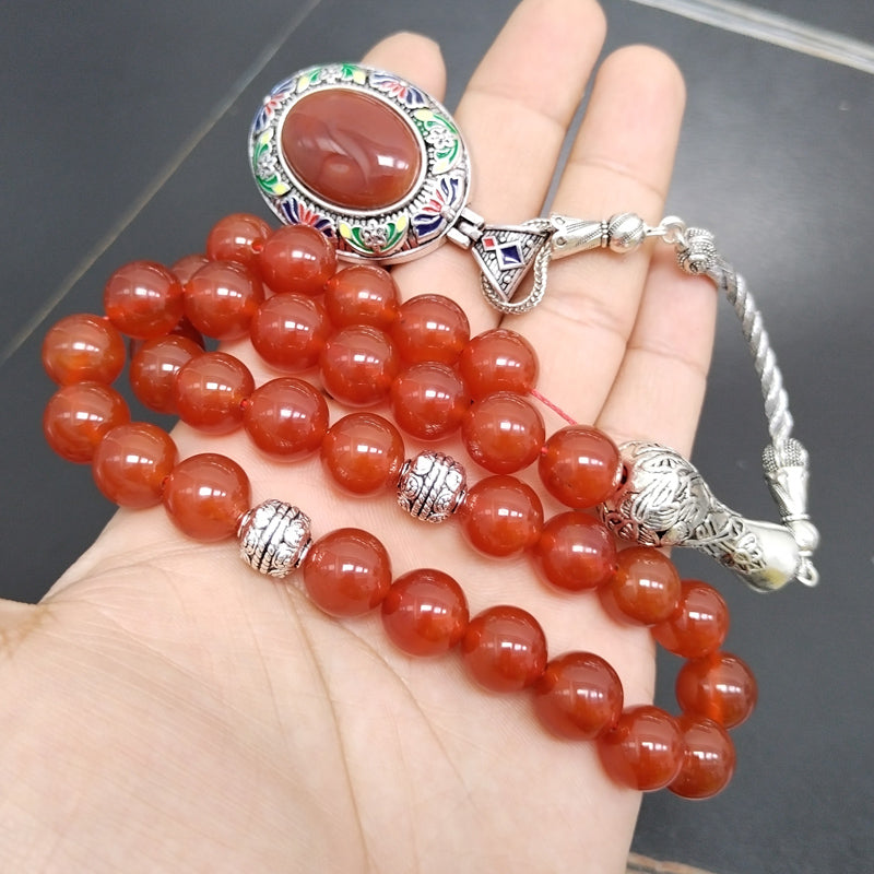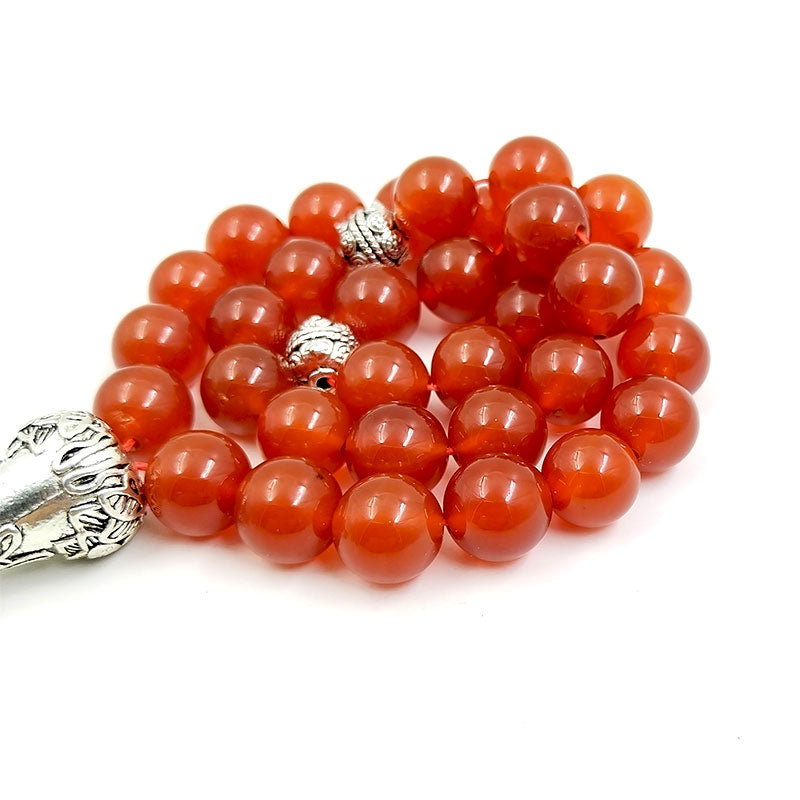 سبحة عقيق احمر حجم الخرز 12 ملي مع الاكسسوار التبتيه بالعقيق الاحمر