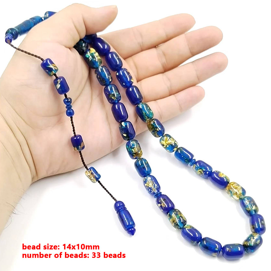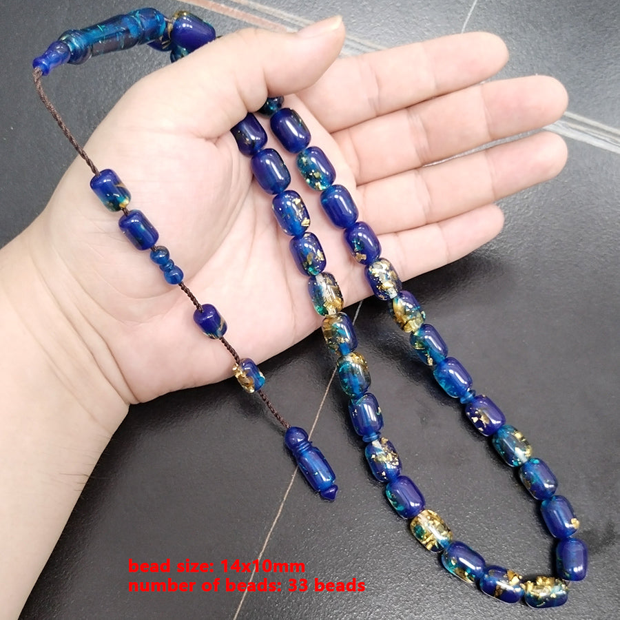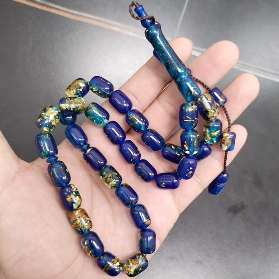 سبحة باكلايت ازرق داخلها ورق الذهب