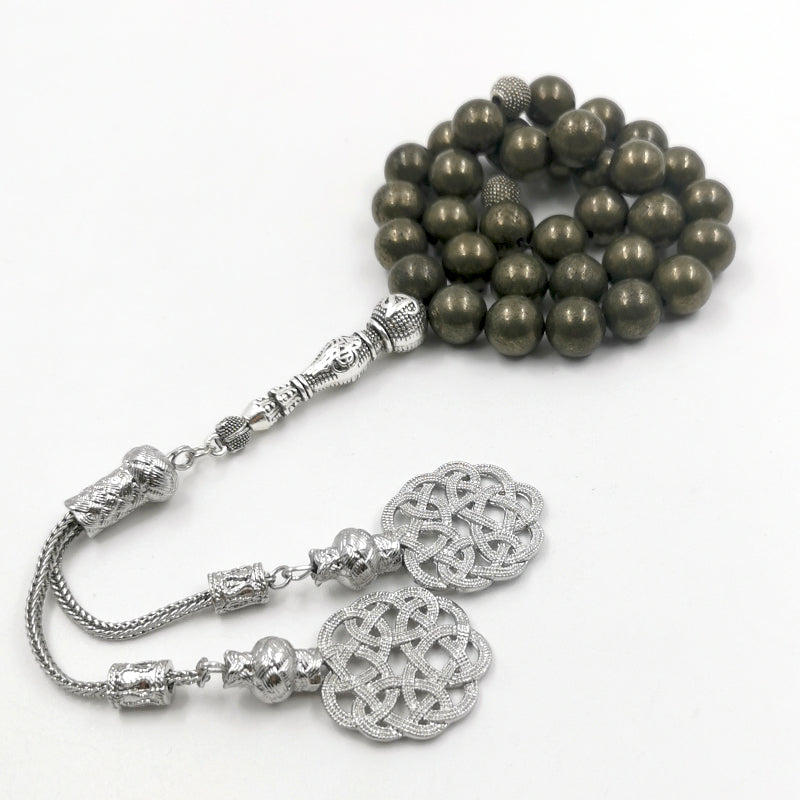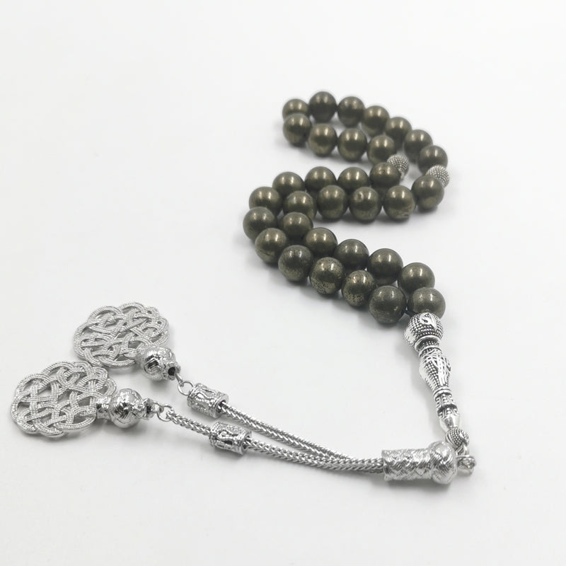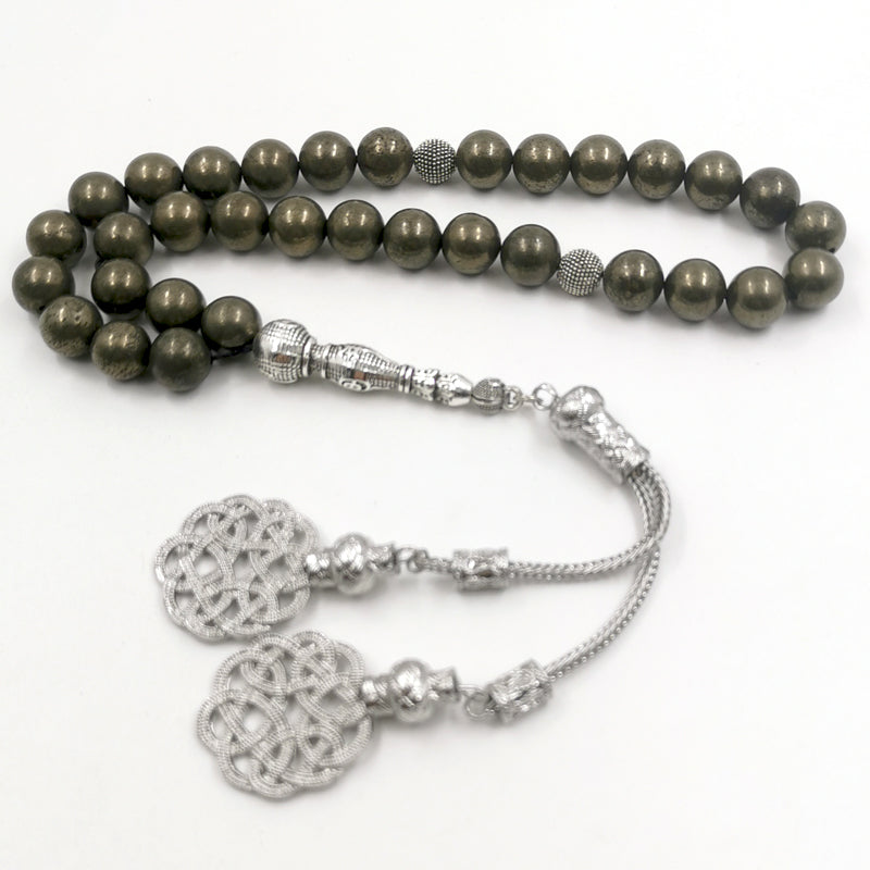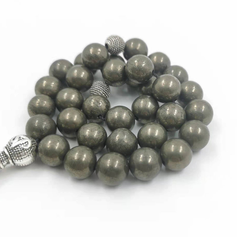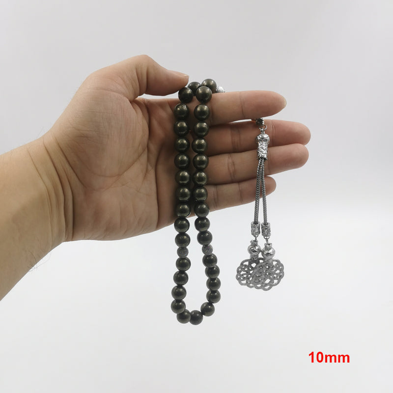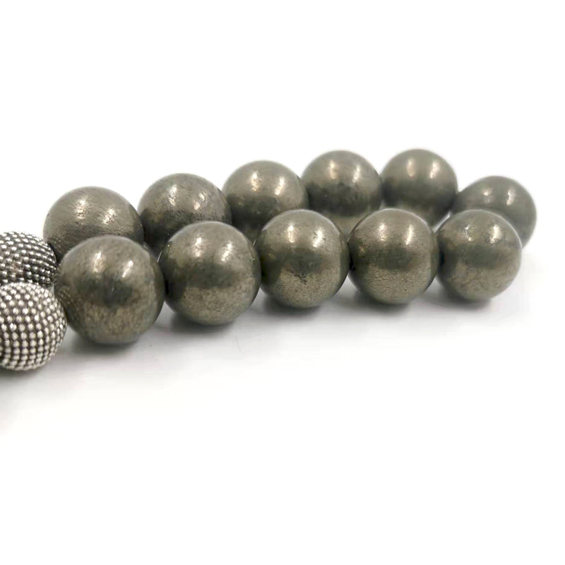 سبحة حجر البيريت طبيعي بالاكسسوار الطربزونة المعدنية