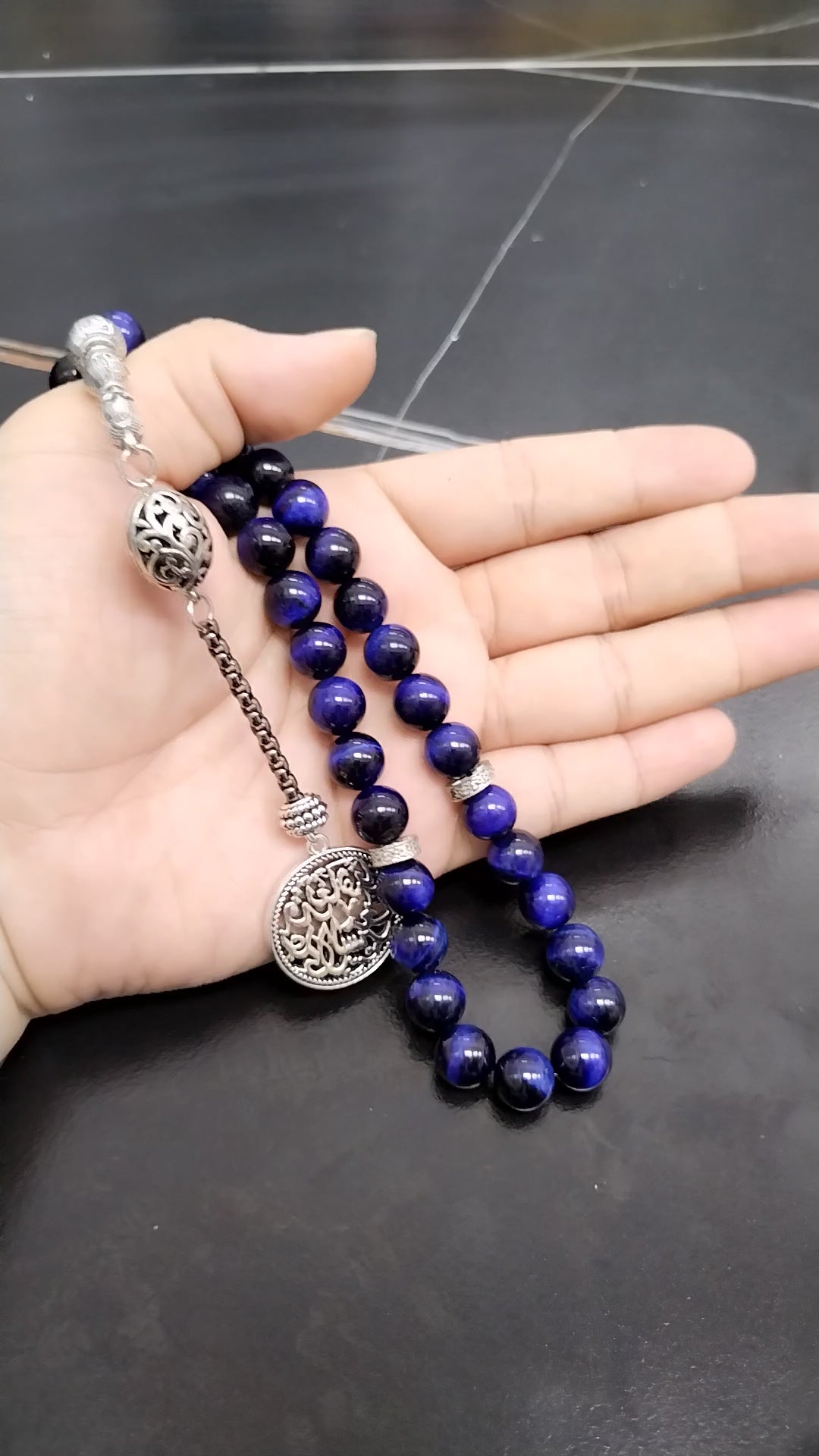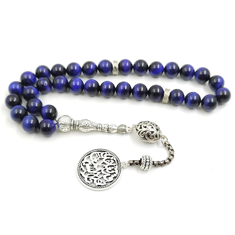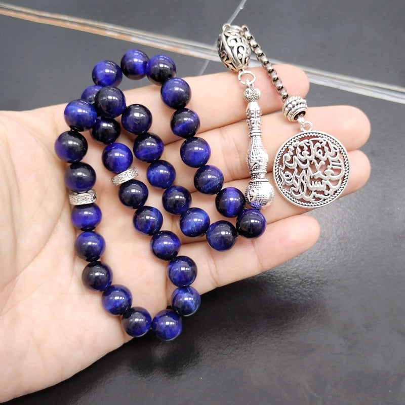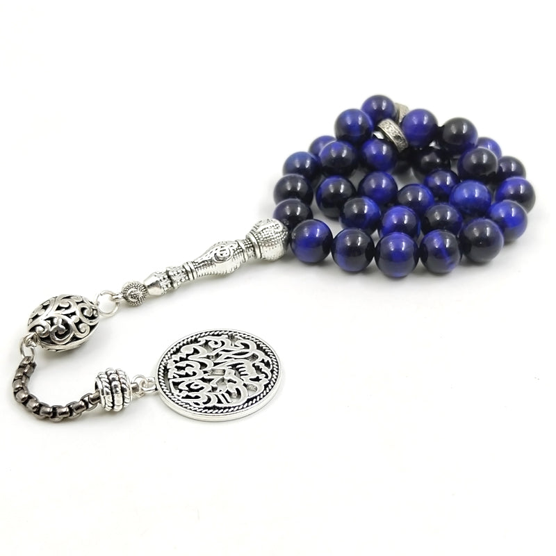 سبحة عين النمر ازرق طبيعي مع الاكسسوار العربيه