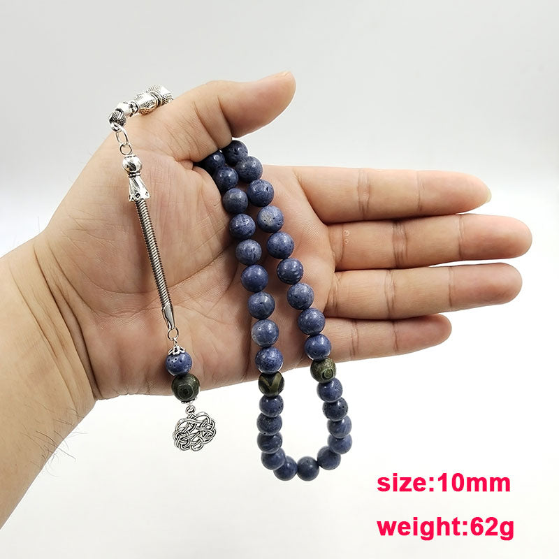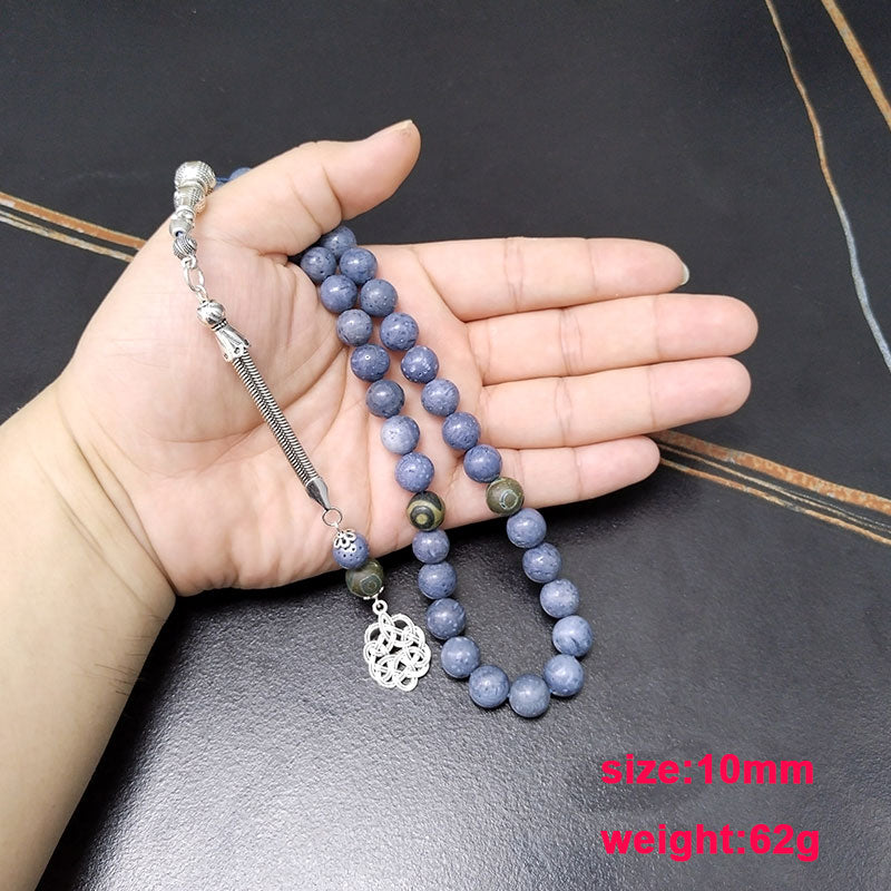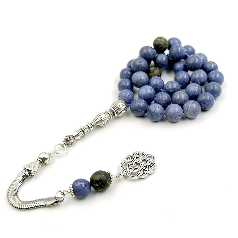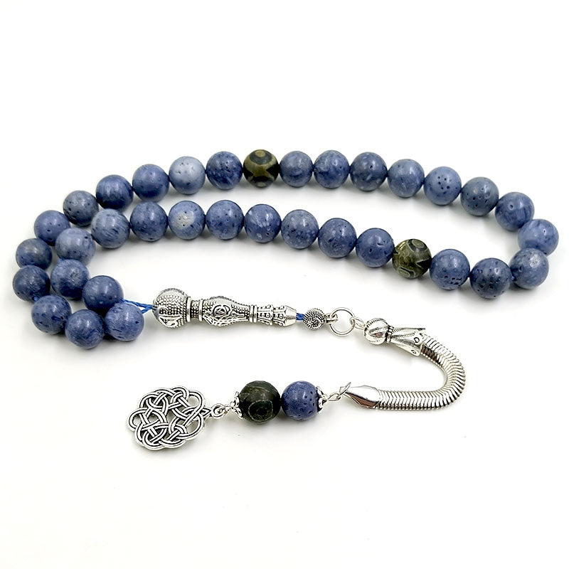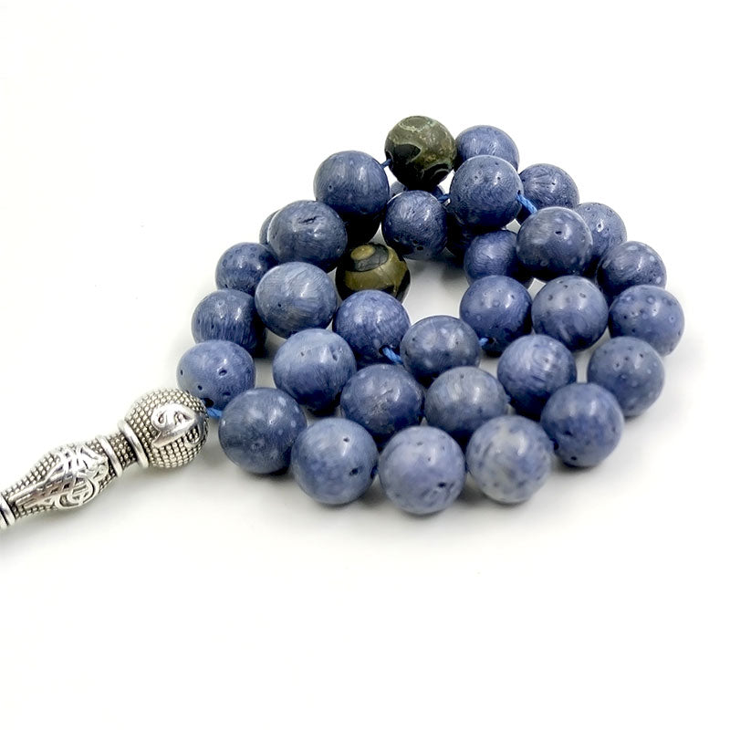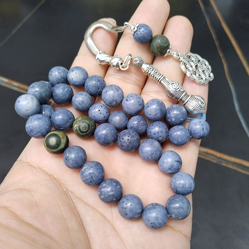 سبحة مرجان ازرق مع عقيق عيون تبتيه