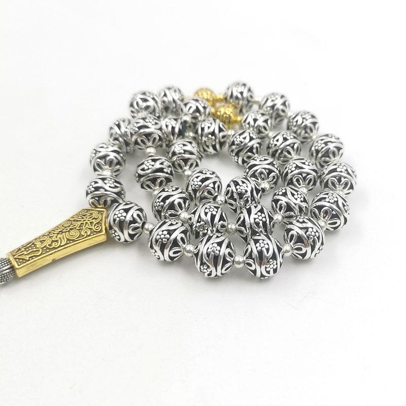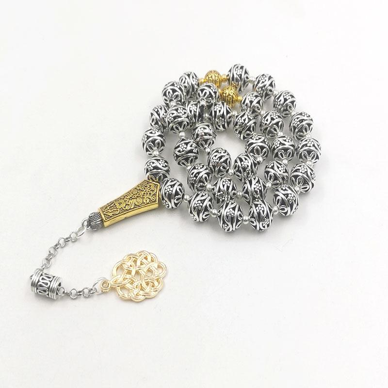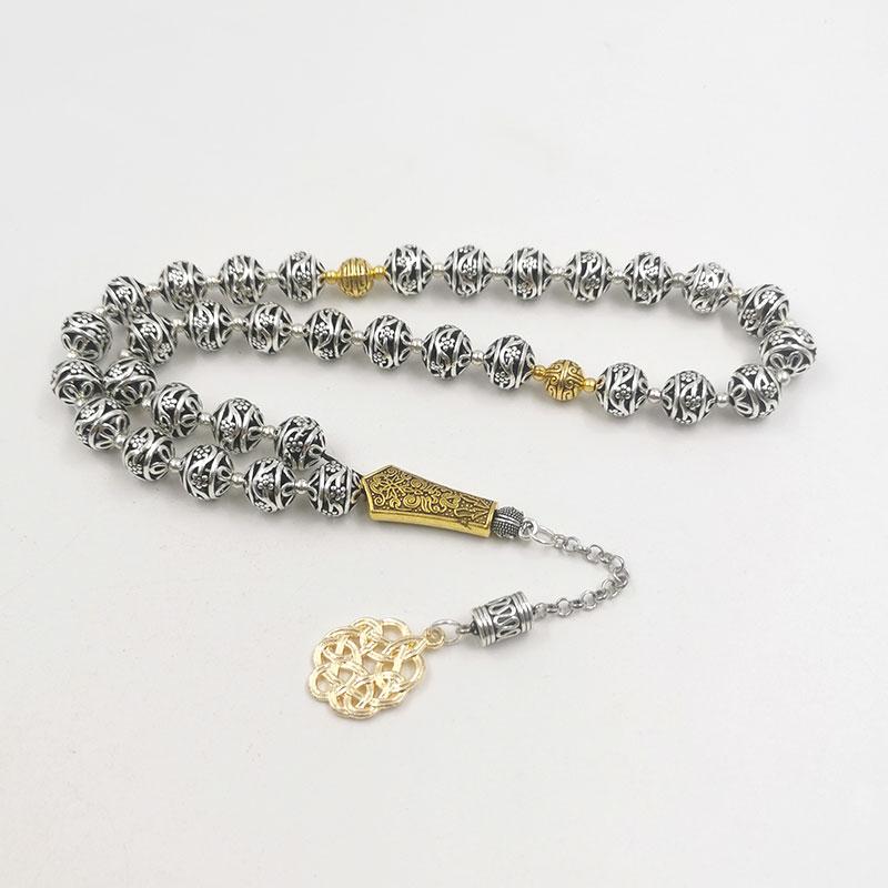سبحة معدنية لون فضي مع طربزونة ذهبية