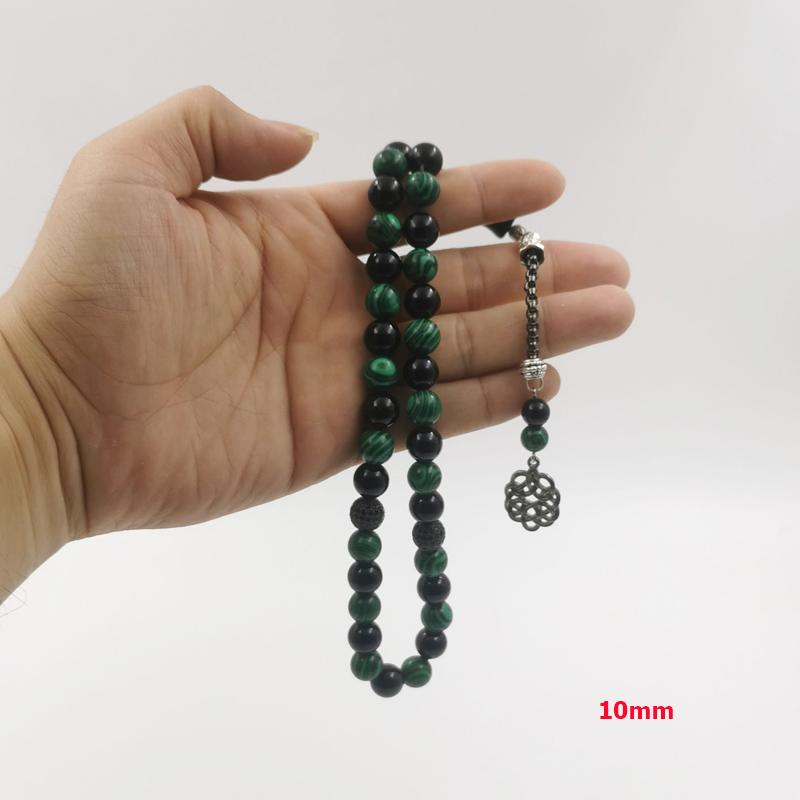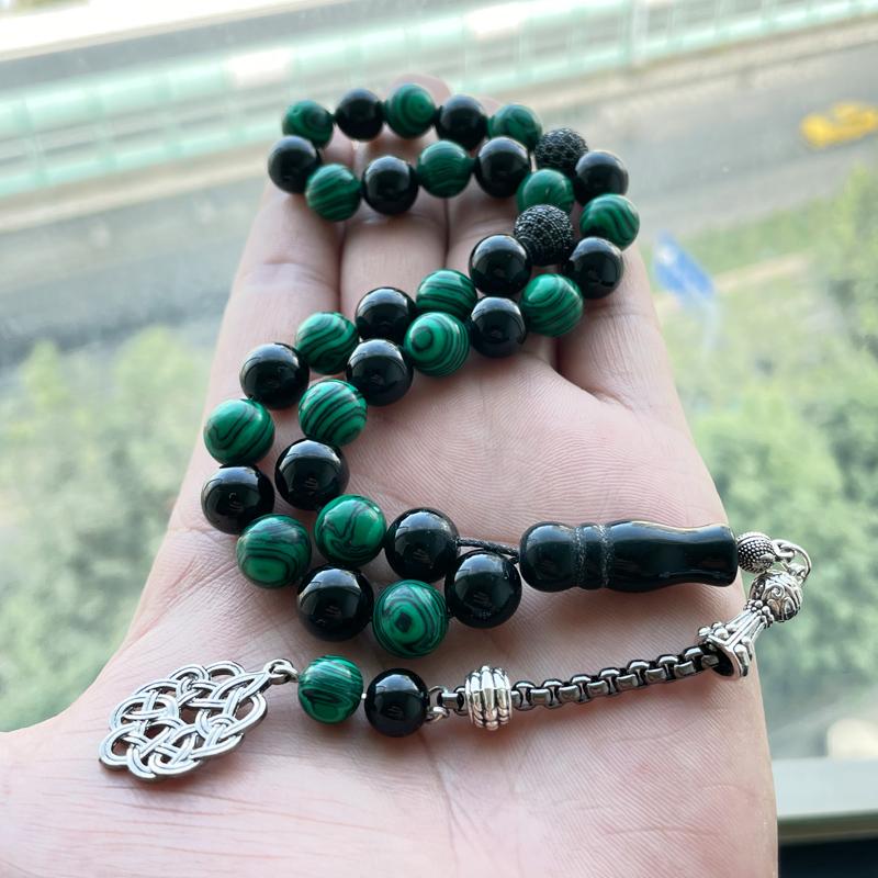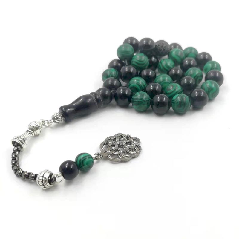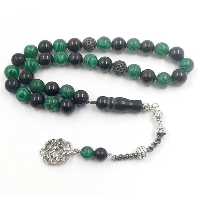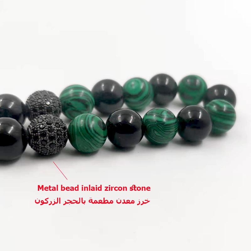 سبحة مميزه حجر عقيق اسود طبيعي مع ملاكيت اخضر