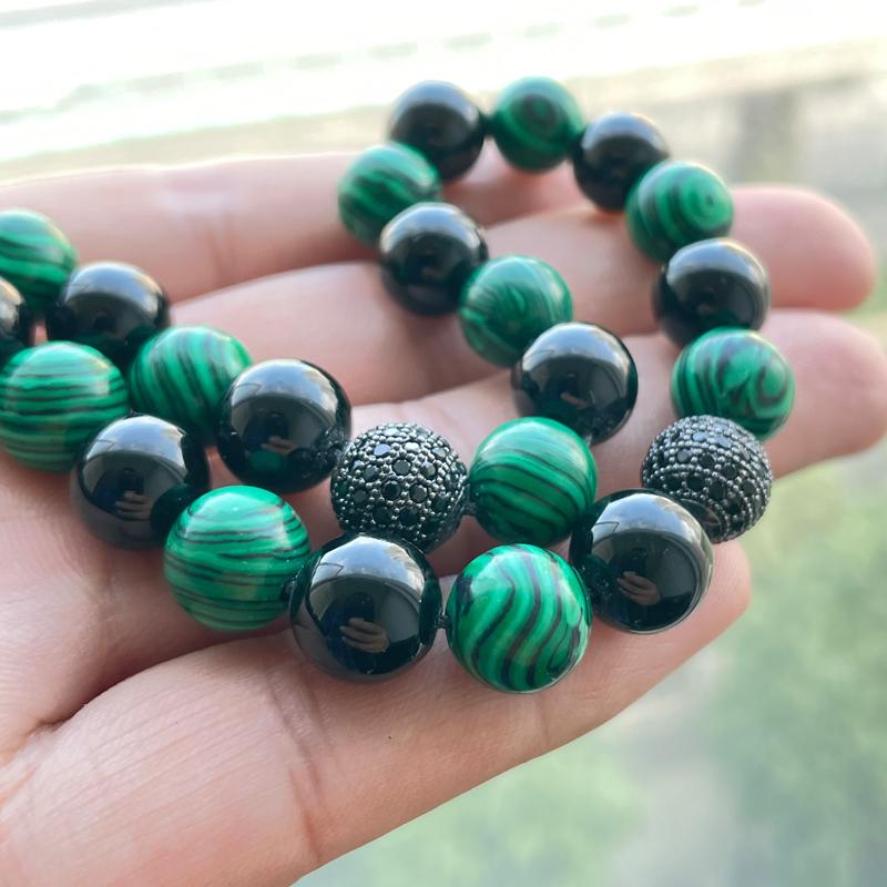 المواد: العقيق الأسود طبيعي مع حجر ملاكيت صناعي