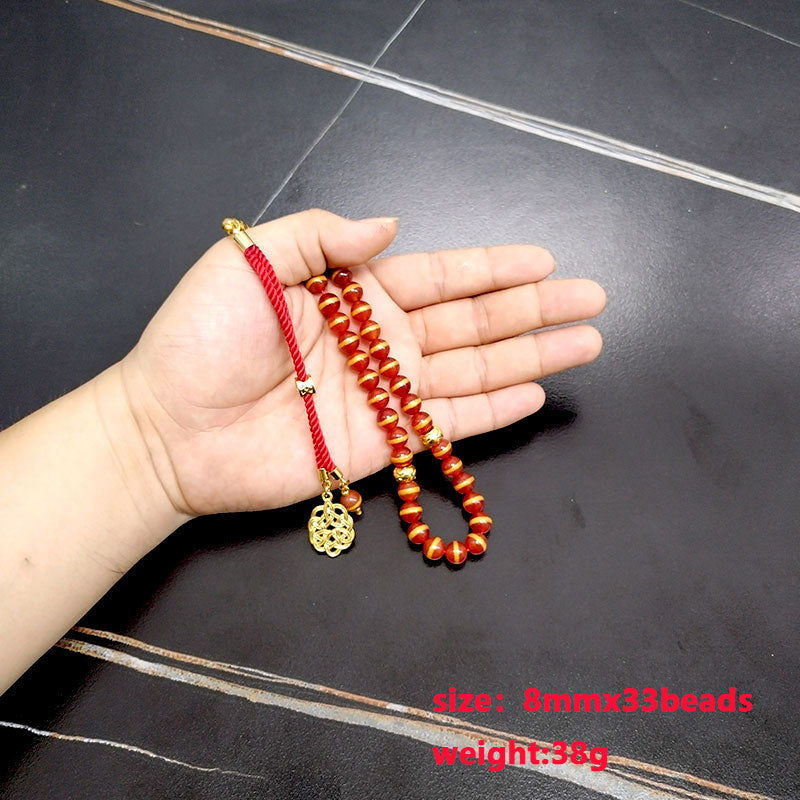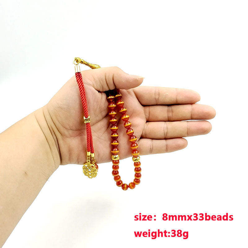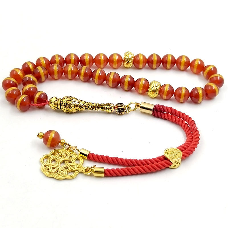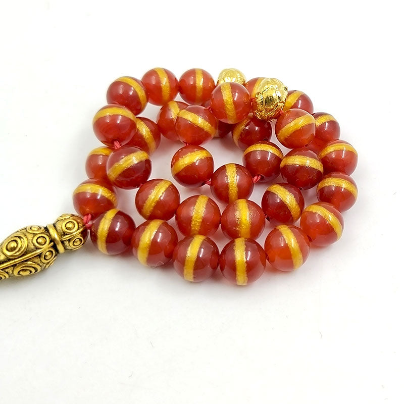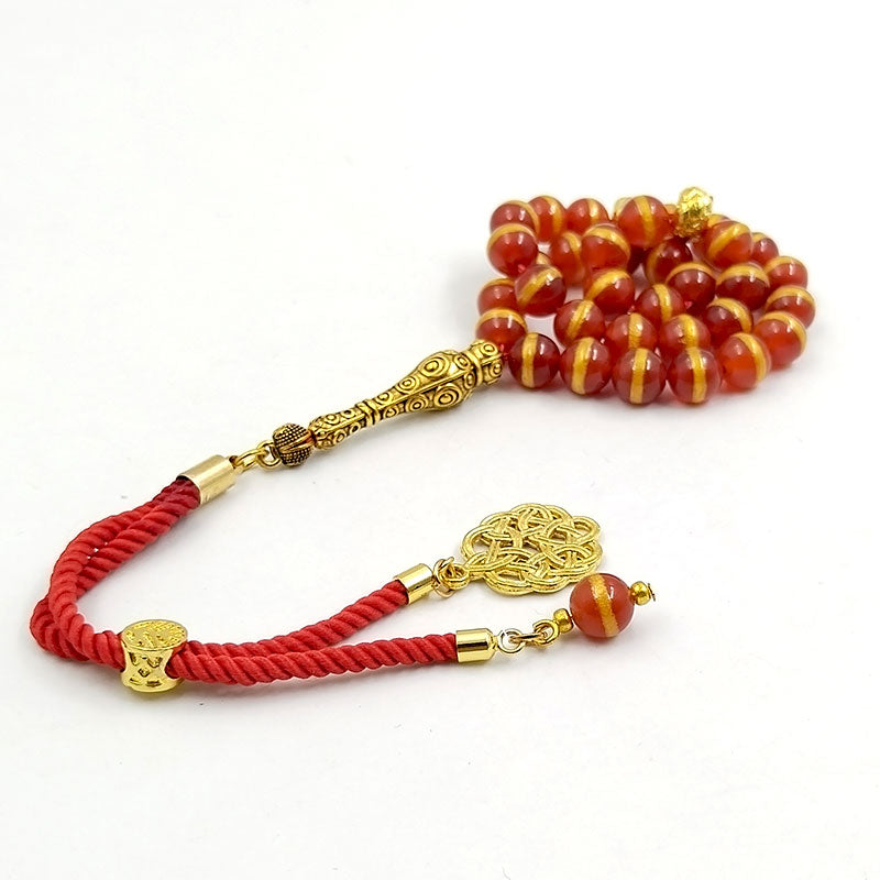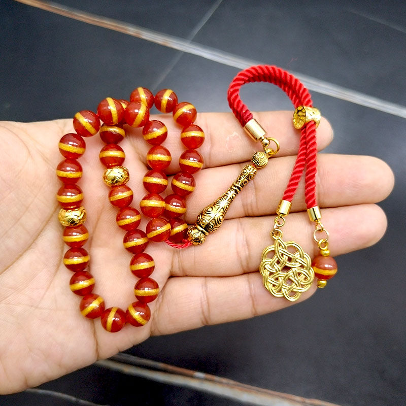 سبحة مميزه عقيق احمر طبيعي مع خيط ذهبيه