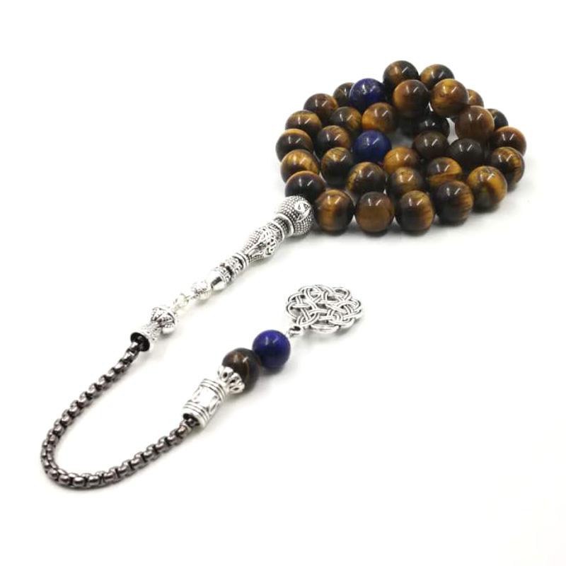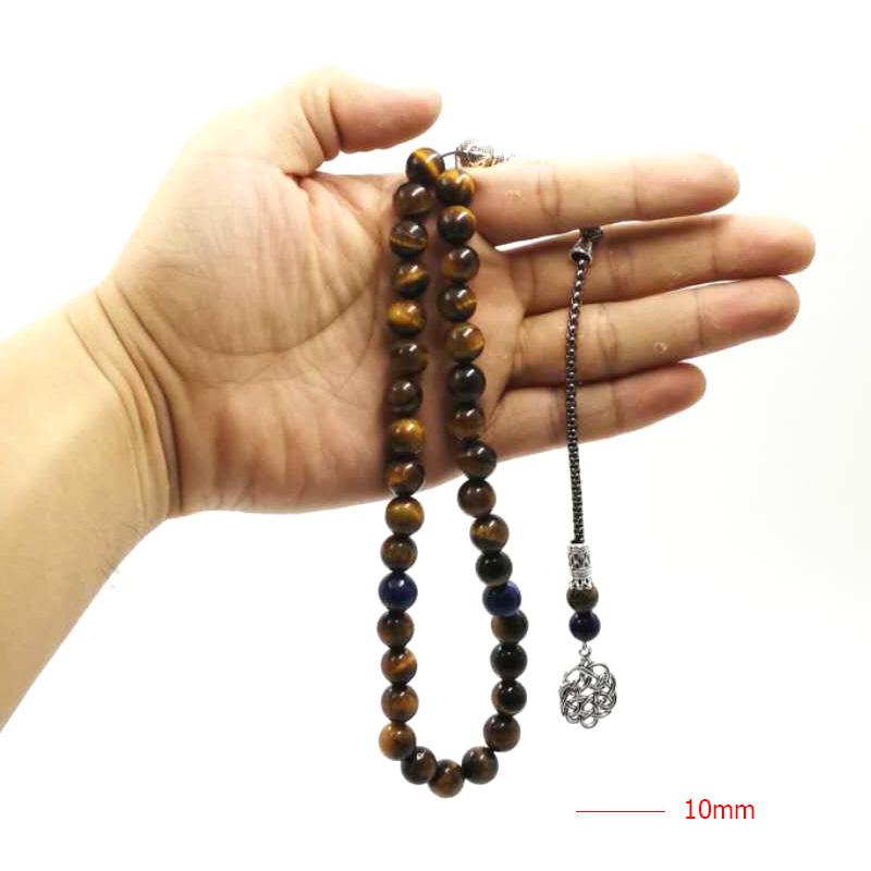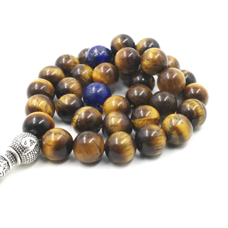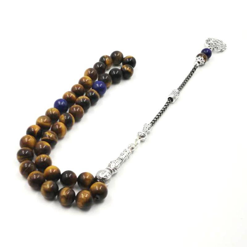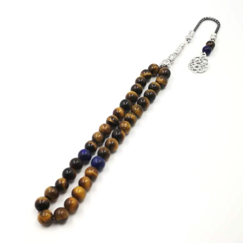 سبحة مميزه حجر كريم عين النمر مع اللازورد طبيعي